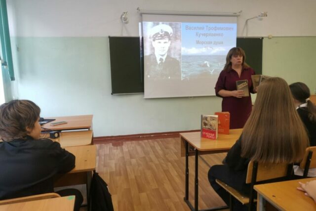 О приморском писателе Василии Трофимовиче Кучерявенко и подвигах моряков торгового флота узнали ребята 7 «А» класса СОШ № 43 в рамках проекта «В краю синих сопок». С 1940 года В. Т. Кучерявенко ходил первым помощником капитана на судах Дальневосточного пароходства. В годы войны побывал в ряде зарубежных стран Тихого океана, в Северном Ледовитом океане, в зонах военных действии. В 1945 году участвовал в освобождении Кореи. Мужественным морякам советского торгового флота посвятил писатель неоднократно переиздававшиеся документальные повести «Перекоп ушел на юг», «Люди идут по льду» и «Пламя над океаном». Эти повести воскрешают героические и трагические эпизоды Великой Отечественной войны, подвиги экипажей мирных торговых судов.