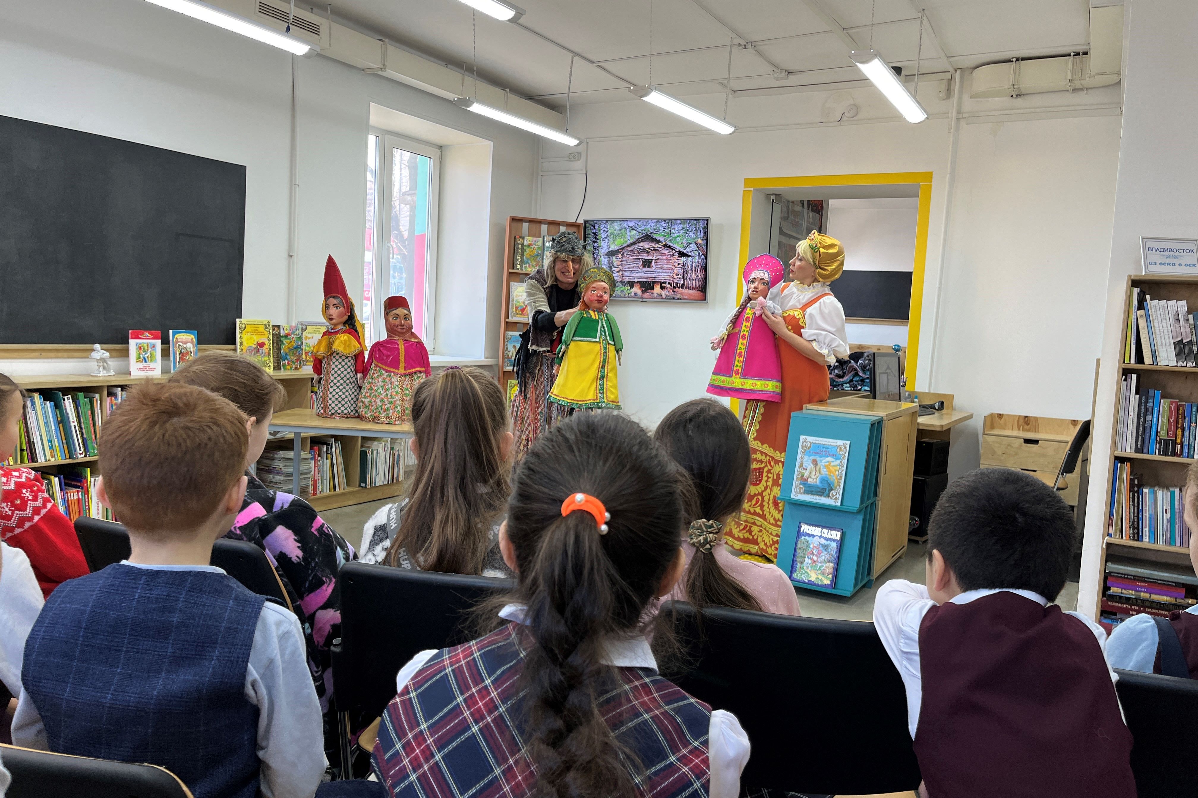 Волшебный мир пушкинской сказки открыли для второклассников, читателей детской библиотеки № 5 артисты: Аэлита Степанова (Приморская краевая филармония) и Роман Шестаков (Дом культуры «Традиции и современность»).