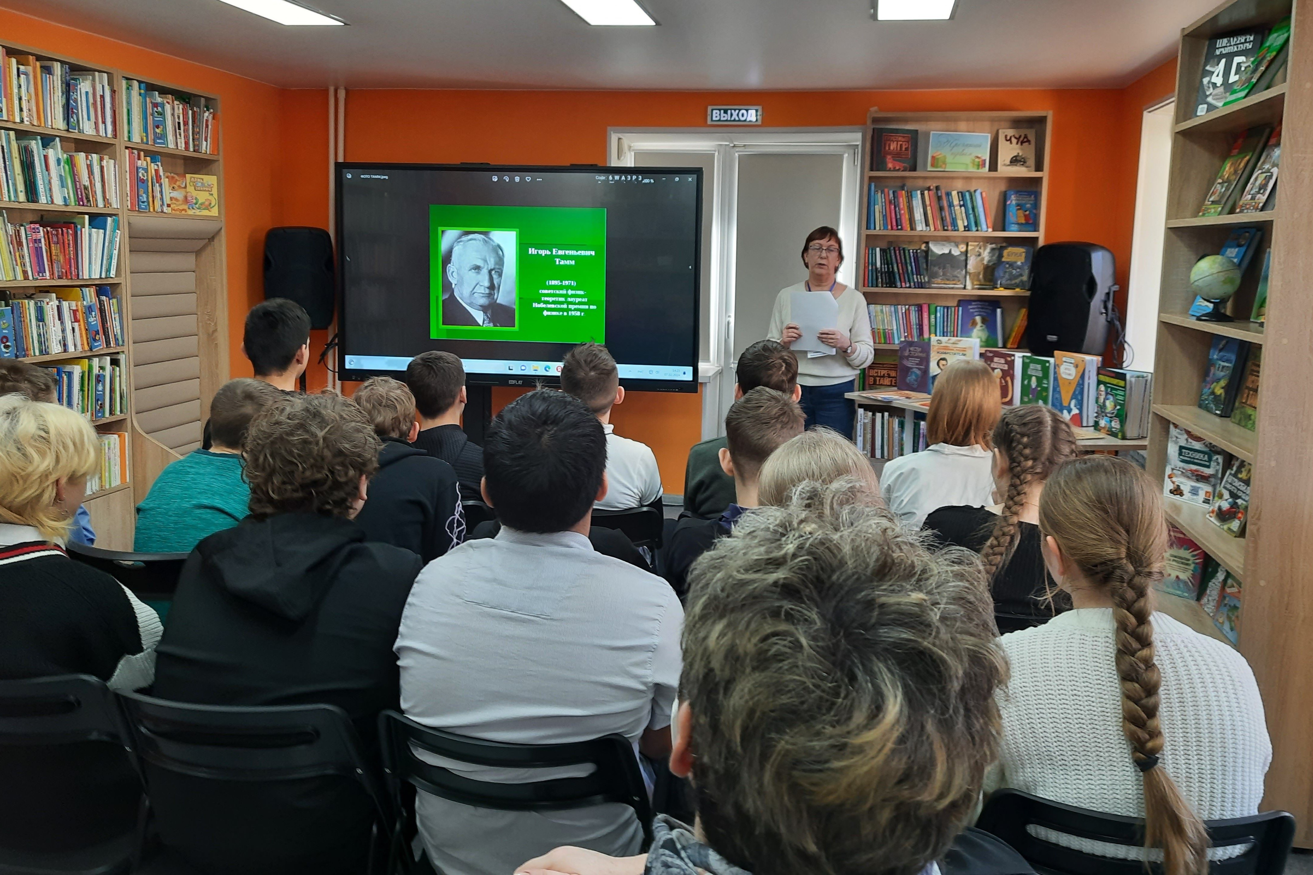 Час интересных сообщений «Великие ученые — наши земляки» организован 7 февраля в библиотеке № 20 для семиклассников МБОУ «СОШ № 58».