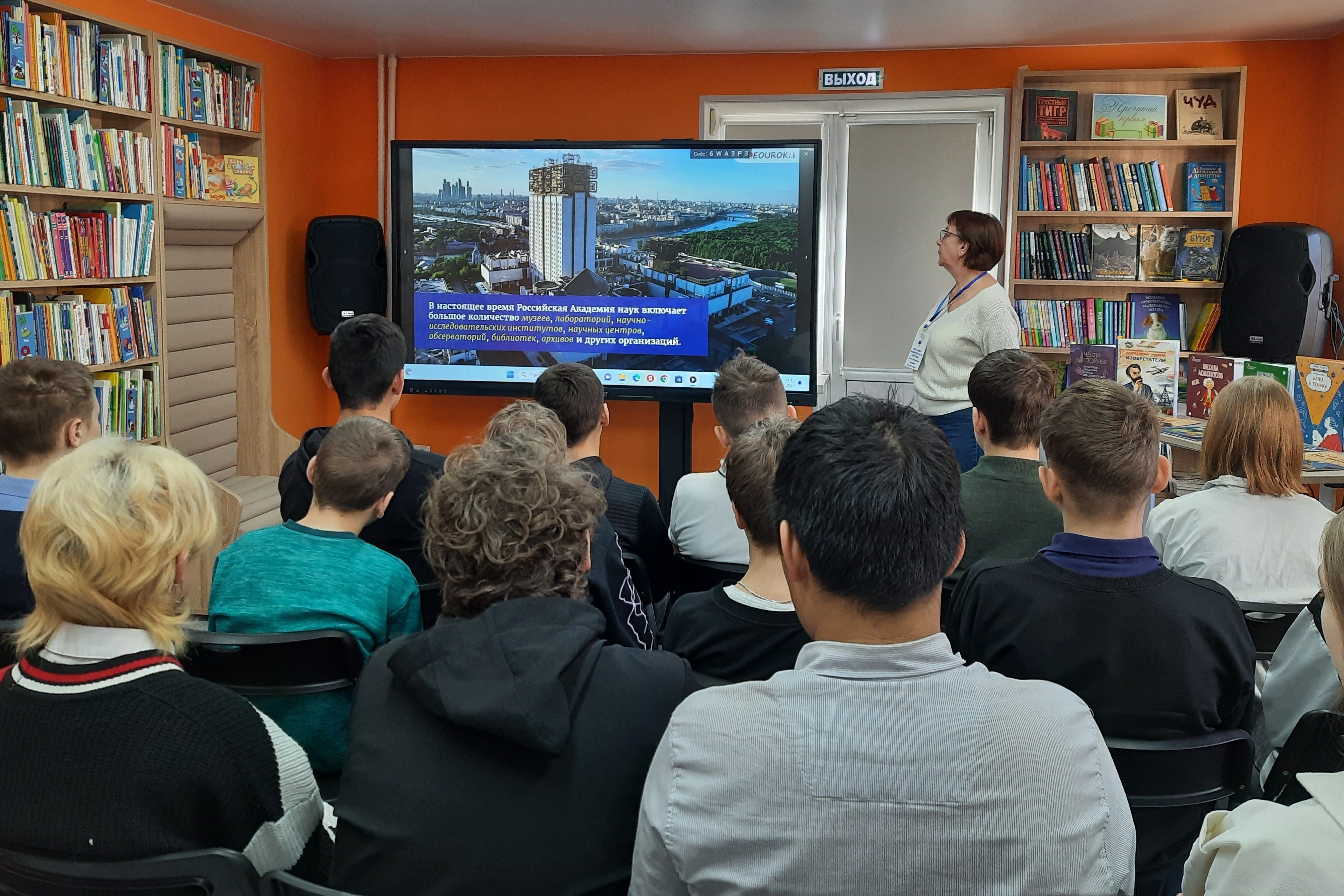 Школьники узнали о знаменитом Указе Петра 1, о создании Академии наук, о работе современной Российской академии Наук. Познакомились с жизнью и научными открытиями известных российских ученых: Ломоносова, Менделеева, Циолковского, Капицы, Курчатова и многих других российских физиков, химиков, конструкторов, биологов, оставивших огромное наследие потомков.
