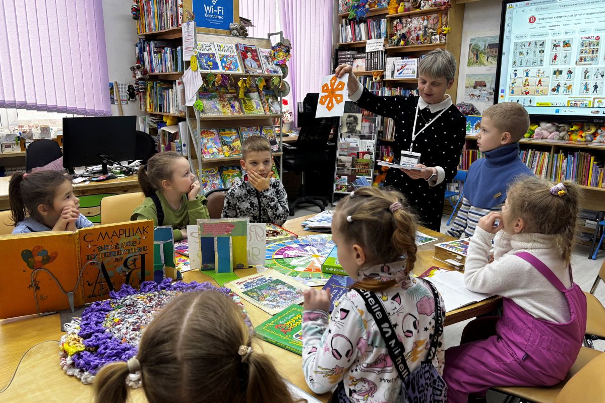 Все вместе декламировали стихотворение Сергея Михалкова «А что у вас?», вспоминали дядю Степу и доброго доктора Айболита, весело слушали интересные истории про Незнайку, как он был музыкантом, с интересом знакомились с энциклопедией про 300 профессий авторов Сильви Санжи и Милана Стари.
