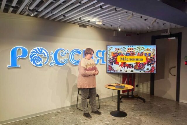 Слушатели Центра русского языка и культуры ДВФУ продолжают открывать для себя традиции и культуру России. На этот раз темой занятия стала Масленица — яркий праздник, который с каждым днём всё ближе. В этот раз встреча прошла во владивостокском филиале национального центра «Россия». В просторном зале центра сотрудник библиотеки №21 (ул. Нейбута, 45) провела лекторий о блинной неделе при организационной поддержке педагога дополнительного образования Натальи Николаевны Скидан.