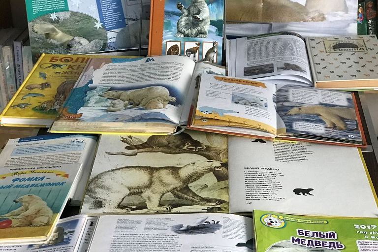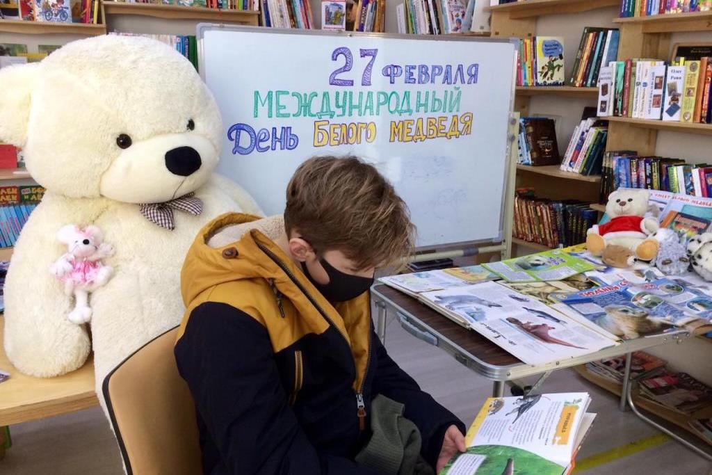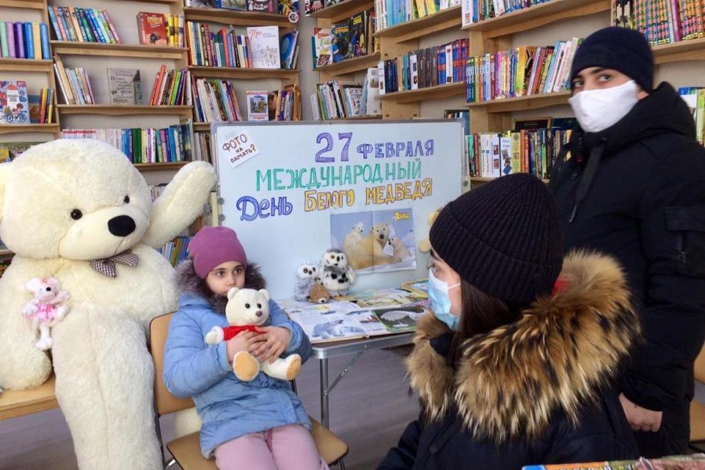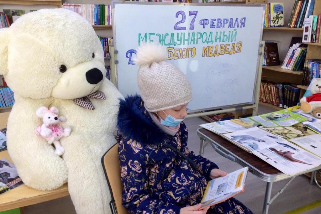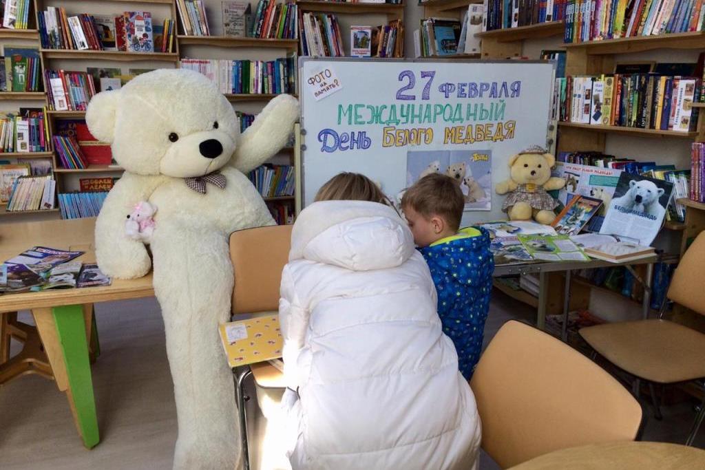 Книжная выставка «По следам белого медведя» посвящена Дню полярного медведя, она вызвала фурор в библиотеке. Мало того, что и дети, и взрослые увлеченно слушали интересные факты об этих красивых хищниках, рассматривали книги и журналы по этой теме, так они устроили настоящую фотосессию возле огромного белого медведя, который прописался в библиотеке!