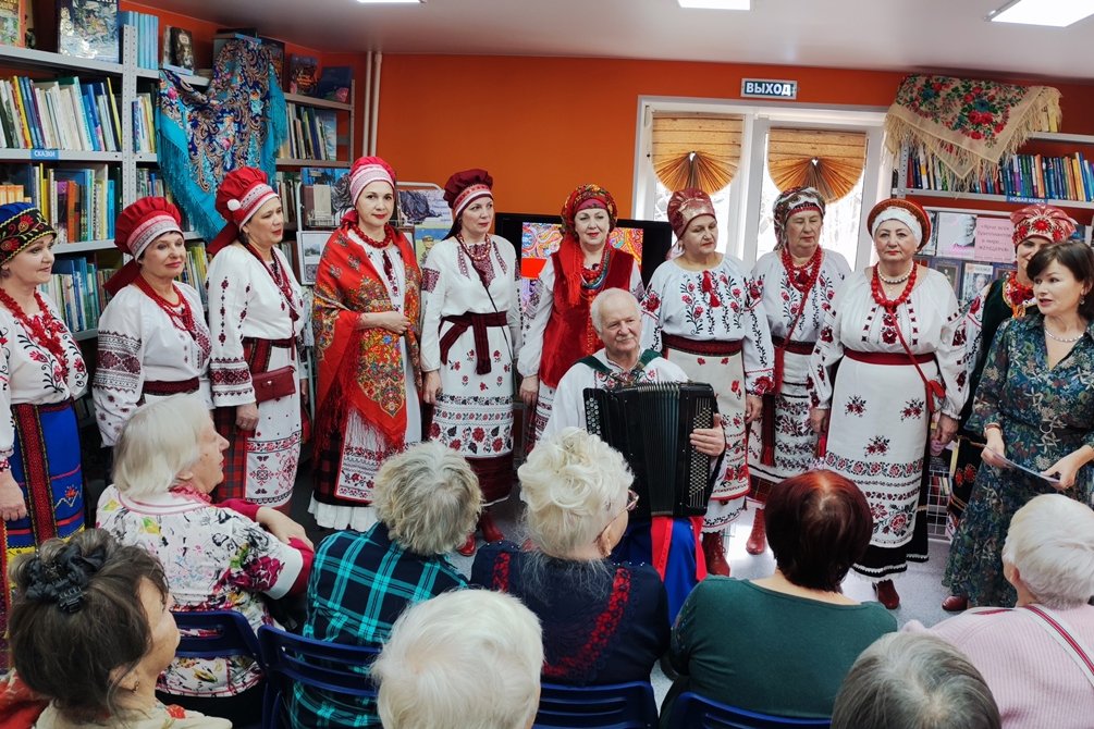 Прекрасным продолжение вечера стало выступление коллектива Дома культуры «Традиции и современность» украинского хора «Горлица» им. Анатолия Криля. Зрители встречали каждый номер бурными овациями, благодарили артистов. Закончилось предпраздничное мероприятие хороводом, общей фотографией и чаепитием с блинами.