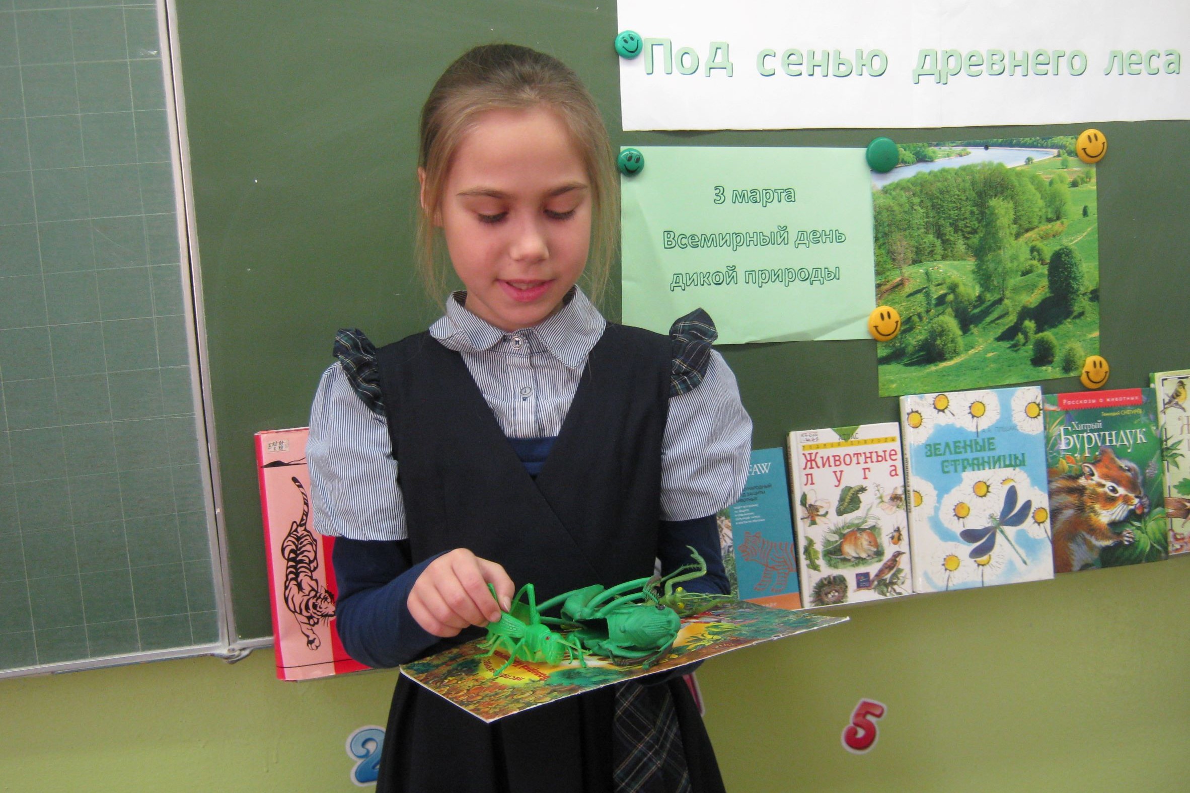 Школьники хорошенько приготовились к уроку. Они подготовили материал об обитателях леса беззащитных и беспомощных перед деятельностью человека. Припаньковская Оля подготовила сообщение о богомоле и кузнечиках, которые так уютно «поют» у бабушки на даче. Гулый Данил поведал о благородном олене, который может исчезнуть по вине охотников. Кочкадаев Иван очень содержательно рассказал о лягушках, живущих и на деревьях, и на болотах, и даже в скалистых сопках. Мальчик вспомнил сказку «Царевна – лягушка» и посетовал о том, что многие не любят лягушек, обижают их, а зря… вдруг это и есть волшебница Василиса Премудрая. О работяге муравьишке, о жуке носороге, о медведе, лисе и филине рассказывали ребята без устали. Всем хотелось поделиться своими знаниями и хоть так на словах защитить беззащитных зверей, птиц, растения.