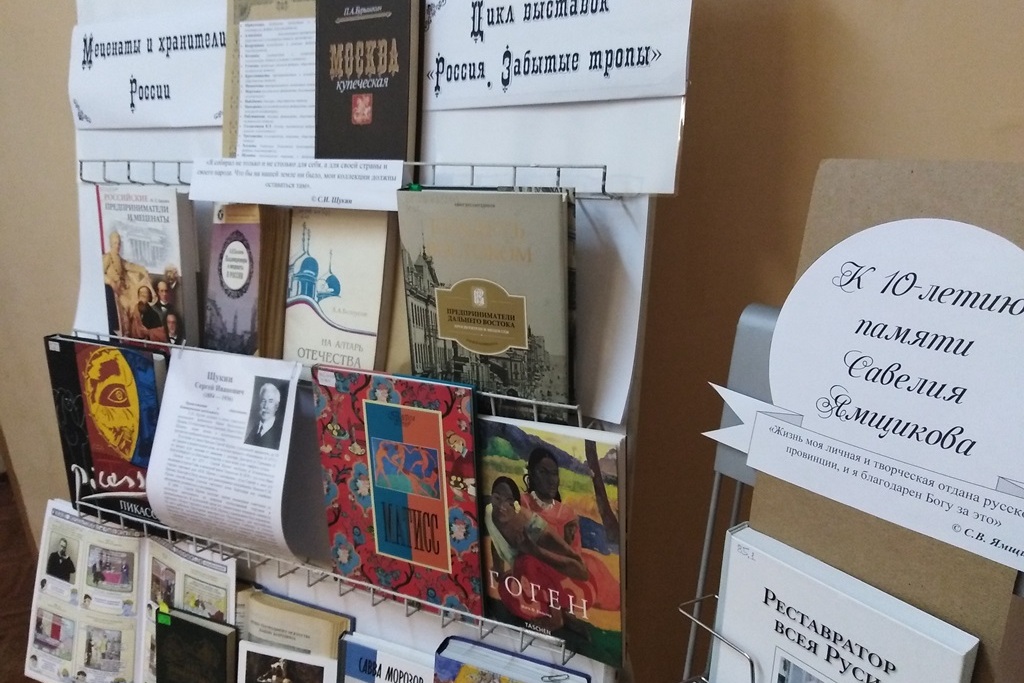 Проект «Россия. Забытые тропы» стартовал в библиотеке № 21 в январе 2019. Он затрагивает разные стороны культуры и искусства прошлой России. Тема «Меценаты и хранители России» представлена книгами, иллюстрирующими участие последнего поколения купечества в развитии русской культуры и искусства.