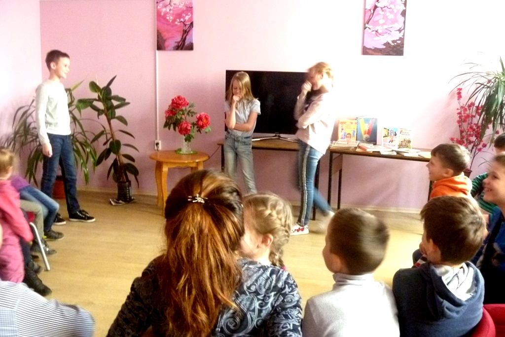 «Ребята, для чего вы ходите в творческую студию «Капель»? – так, с вопроса, начались занятия воскресного дня в библиотеке №13. Объявленная тема встречи — «Давай смеяться вместе» (час импровизаций).