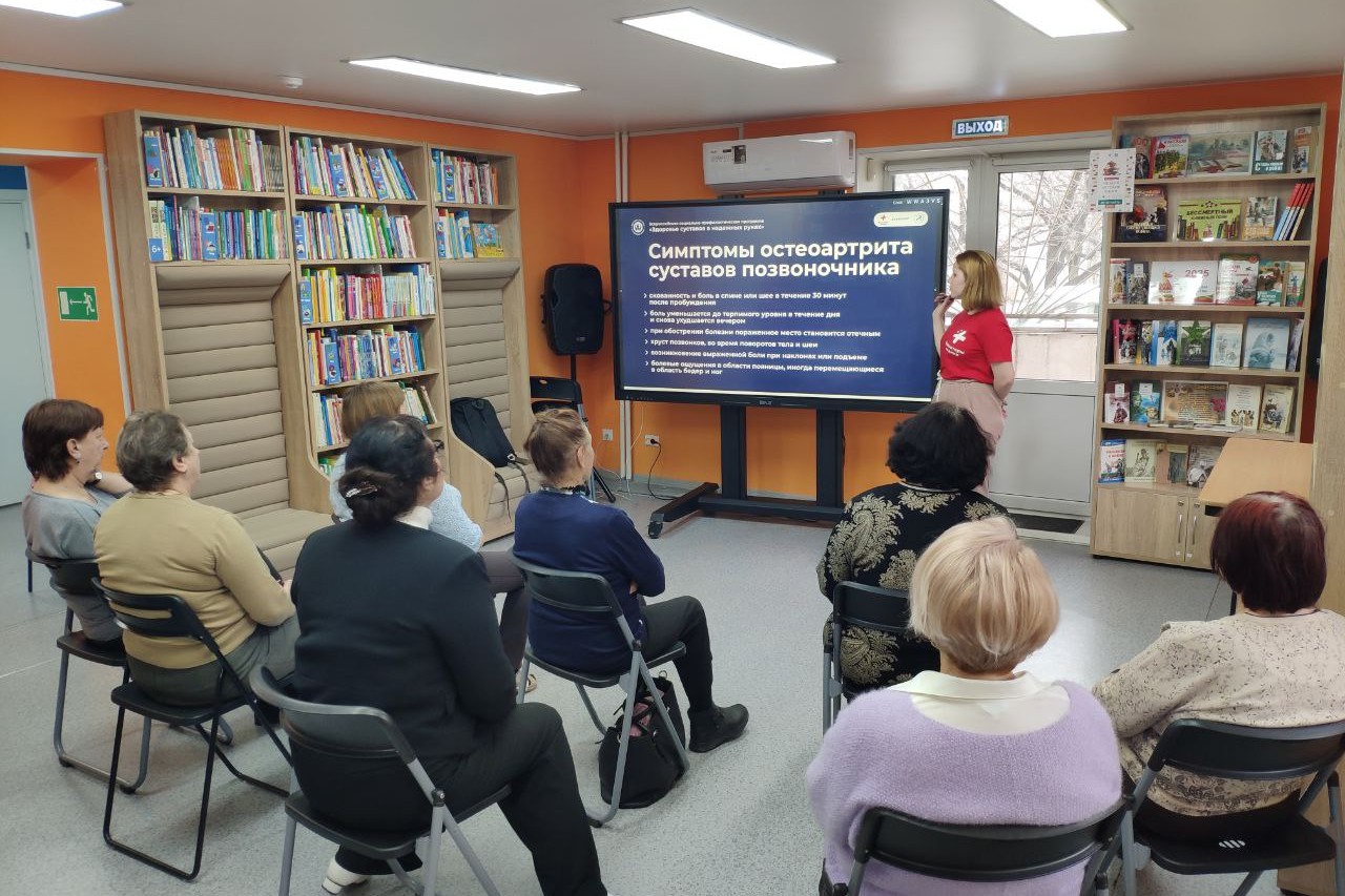 В преддверии Всемирного дня здоровья праздника, 27 марта библиотека № 20 организовала встречу для читателей старшего возраста «Здоровье позвоночника». Волонтеры-медики ТГМУ в ходе профилактической беседы, посвященной здоровью позвоночника, ответили на следующие вопросы слушателей: как распознать у себя и своих близких остеохондроз позвоночника, обозначили ведущие симптомы, как предотвратить развитие заболевания, обсудили основные шаги, какие упражнения можно выполнять при остеохондрозе позвоночника, поговорили о лечебной физкультуре. Слушатели тепло поблагодарили молодых медицинских специалистов и договорились о новых беседах.