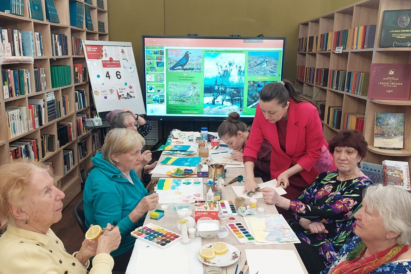Ежемесячная встреча читателей клубного объединения «В мире прекрасного» 26 марта состоялась в формате творческой мастерской. Сотрудники библиотеки № 4 предложили немного поэкспериментировать с материалами и использовать в качестве инструмента рисования не кисть, а соль, лимон, ватные палочки, воздушный шарик и даже втулки из- под бумаги. Фантазировали на тему весны и живого мира. Получились симпатичные птицы, цветы, животные. Акварель и гуашь добавила яркости красок и вдохнула настроение в изображения. Творчество отвлекает от забот, расширяет горизонты познания, помогает в принятии верных решений, поднимает настроение. И на этот раз все присутствующие серебряного возраста сказали, что время для них пролетело незаметно, они отвлеклись от домашнего быта, мыслей о недомогании и просто отдохнули душой в тёплой дружеской атмосфере.