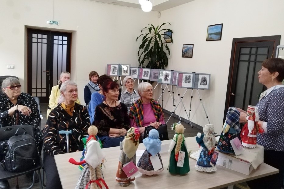 Традиционная славянская кукла – передавалась из поколения в поколение. Изготовлению куклы в славянском общине девочек учили с 3-х лет, а к 12-13 годам у неё накапливалось целое приданое (кукольный сундучок). Каждая кукла имела свою функцию. Например, Большуха отвечала за мир и благоденствие всего рода, Берегиня – за рождение и обновление семьи, Травница – за здоровье близких, и другие. Участники встречи узнали о технологии и материалах, из которых изготавливаются куклы. Встреча сподвигла участников мероприятия попробовать проявить своё творчество и фантазию под руководством кукольного мастера.
