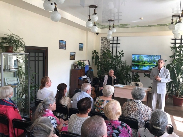 В последнюю субботу мая в библиотеке им. И.У. Басаргина прошла очередная встреча любителей поэзии и музыки. Главным гостем программы стал писатель и поэт Анатолий Сергеевич Рязанов. Талант этого человека весьма разносторонен. Он лауреат многих литературных конкурсов Приморья. Книги «Родина моя», «Мимолётные встречи», эссе «Моё Приморье» получили признание читателей, кроме того, он автор более 30 песен и романсов, является художественным руководителем квартета «Приморье», читает стихи А. Твардовского.