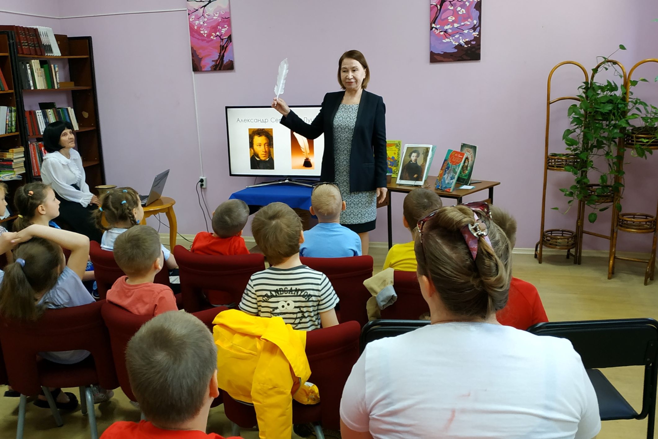 Библиотека № 20 организовала громкие чтения «Кто такой Пушкин» для ребят МБДОУ № 144. Дошколятам был показан мультфильм «Пушкин. Биография для детей. Самое главное», рассказывающий доступным детям языком об основных этапах жизни поэта. Дошкольники слушали «Сказку о рыбаке и рыбке» из книги А.С. Пушкин «Сказки». Дети приняли участие в викторине с ответами из фрагментов просмотренных мультфильмов. В конце мероприятия дети разукрасили любимых персонажей сказок.
