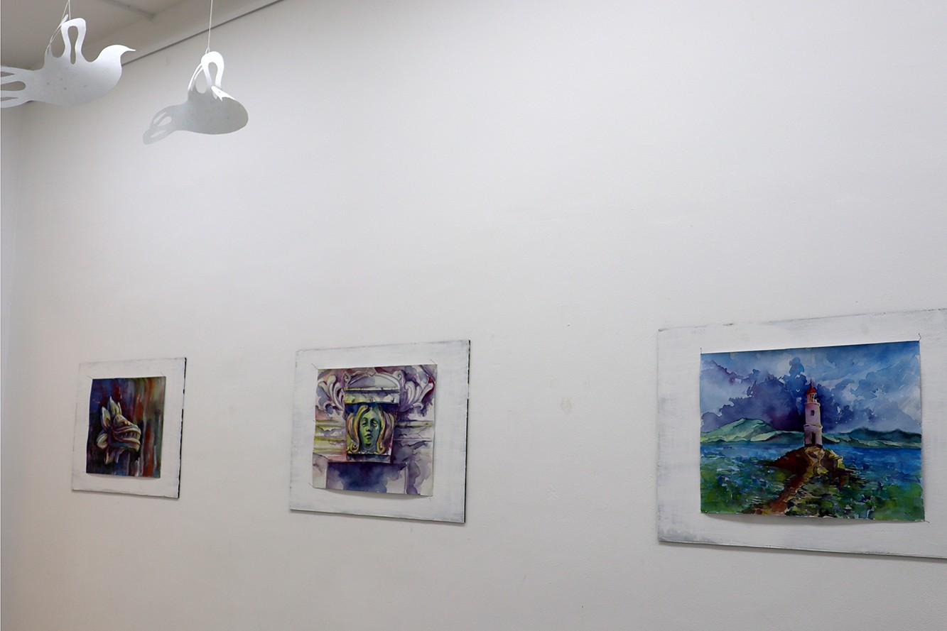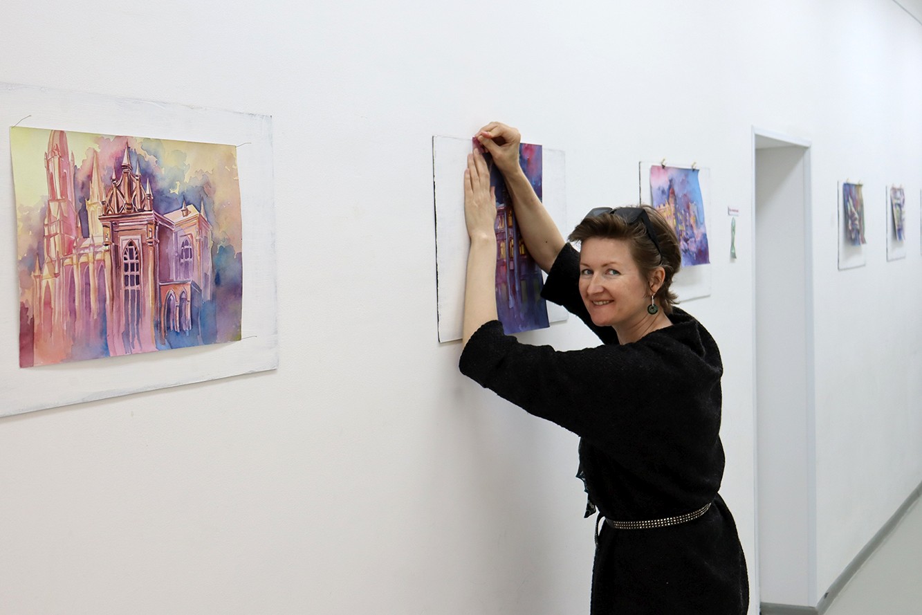 Смена экспозиций в музеях и галереях города проходит за закрытыми дверями, а вот посетители библиотеки № 8 вполне могут стать наблюдателями развески. Выставочное пространство в библиотеке небольшое, компактное, снять одну выставку и развесить другую можно за несколько часов, включая все раздумья над тем, куда какую работу определить и чем дополнить выставку. Серия диатипий «Сады любимых» Ирины Попович возвращается к хозяйке, жаль расставаться этой выставкой, потому что первое время около работ можно было почувствовать чудесный запах масляной краски. Стоит сказать, что детвора в библиотеке сначала с недоверием отнеслась к абстрактным на первый взгляд работам этой выставки, но после объяснений о том, что на них можно увидеть, если присмотреться, дети восприняли это как игру. Синие и темно-красные пятна и линии превратились как по волшебству в задумчивые лица, мелькающие среди вечерней листвы.