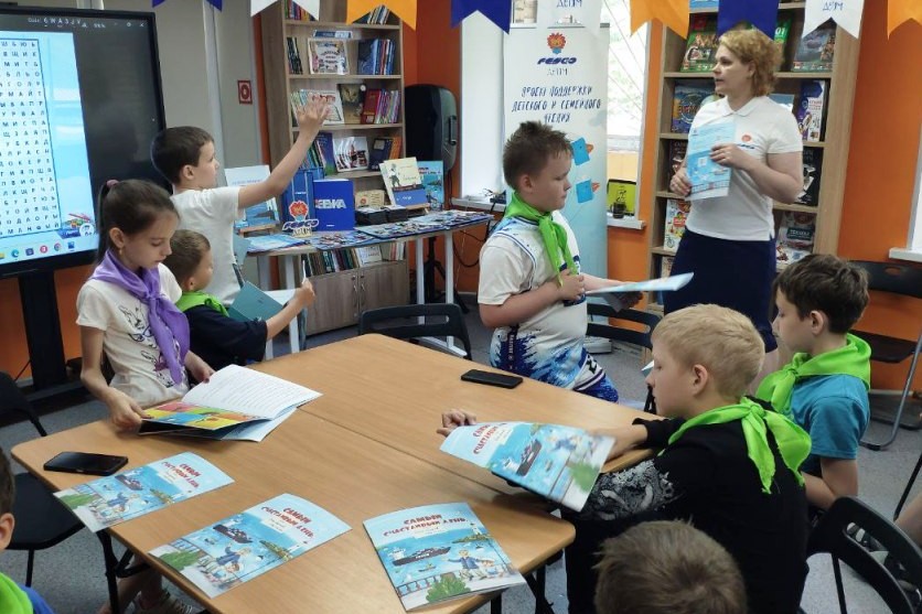 Руководитель проекта Оксана Сергеевна Варченко и специалист Любовь Сергеевна Рассказова представили ребятам книги, показали видеосюжет о работе Владивостокского морского торгового порта, а также подготовили вопросы и задания для ребят. Школьники приняли активное участие в интерактивной программе, с увлечением разгадывали филворд и пазлы о море профессий, отвечали на вопросы ведущих. По окончании интерактива каждый участник получил в подарок книгу «Самый счастливый день, или Семь футов под килем».