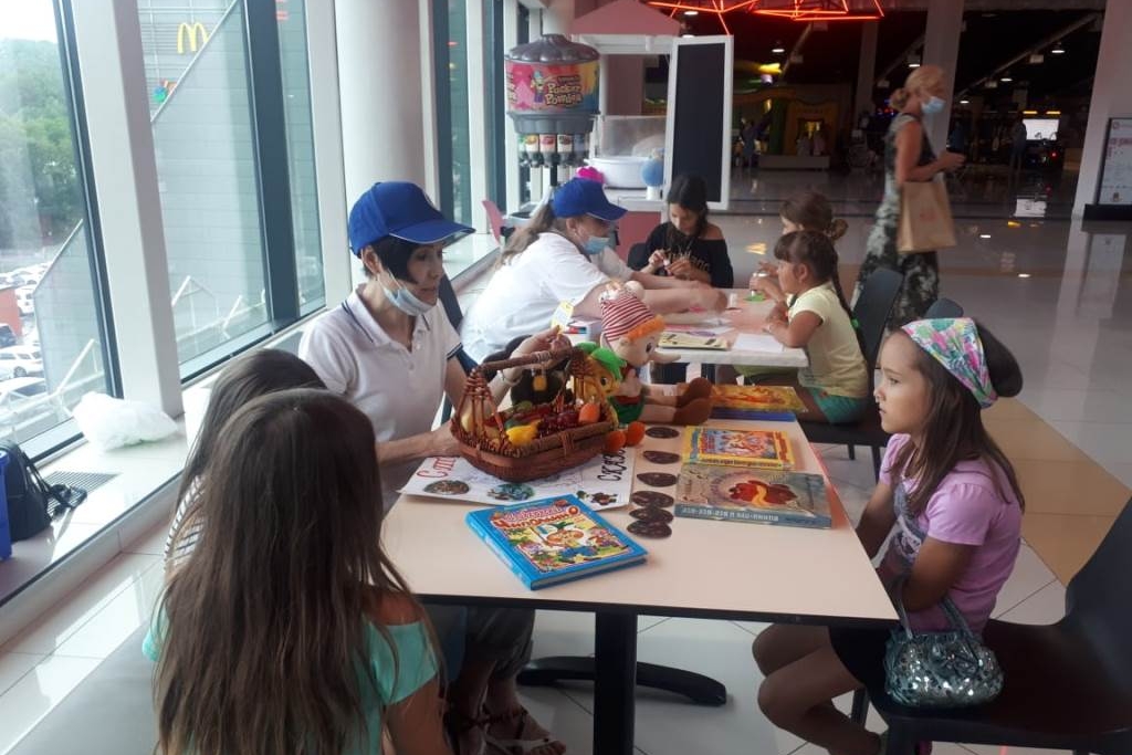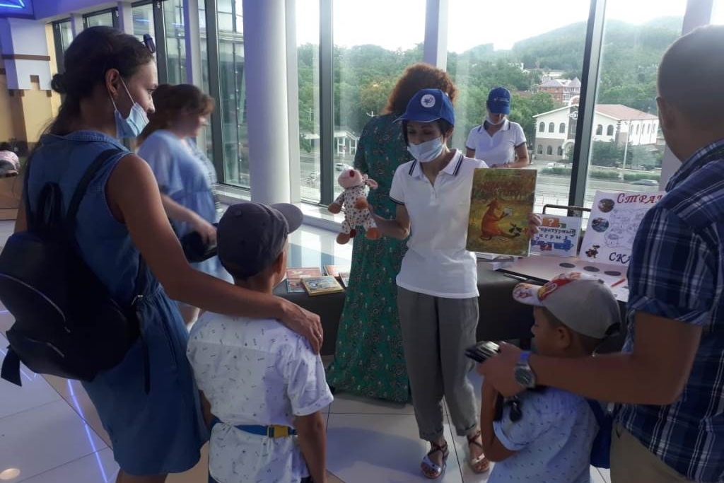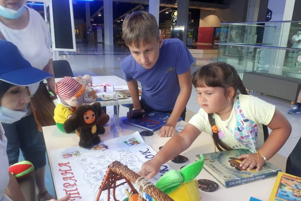 Открытая библиотечная площадка «Литературные игры» в ТРЦ «Седанка-Сити» встречала горожан в первую субботу августа. Дети, подростки и родители стали участниками литературного путешествия по карте сказок, приняли участие в викторинах по страницам любимых детских книг, отгадывали загадки и кроссворды. Вместе с Чиполино угадывали обитателей садов и огородов, с Чебурашкой и Винни-Пухом совершили путешествие по сказкам, а с коровой Муркой из сказки «Дядя Федор, пес и кот» «окунулись» в молочную викторину.