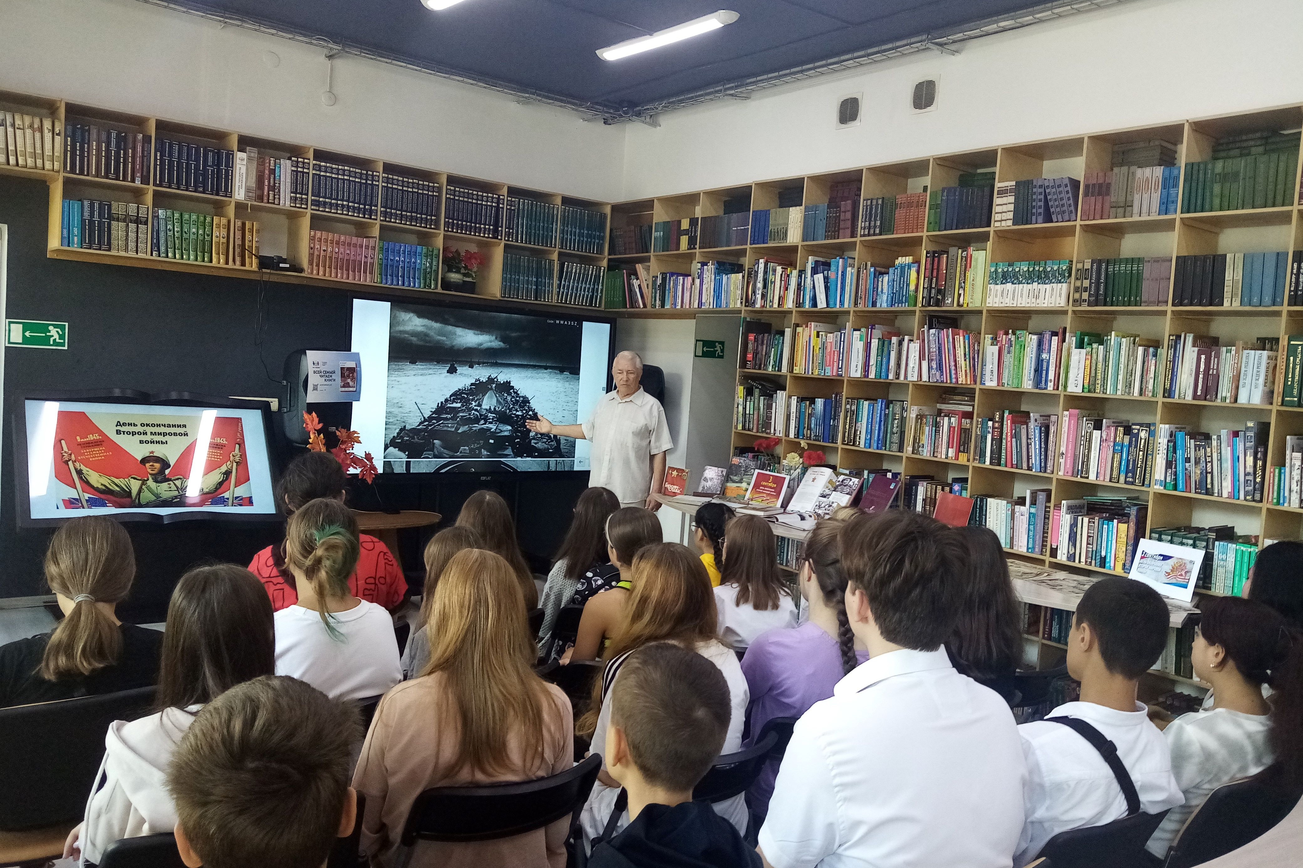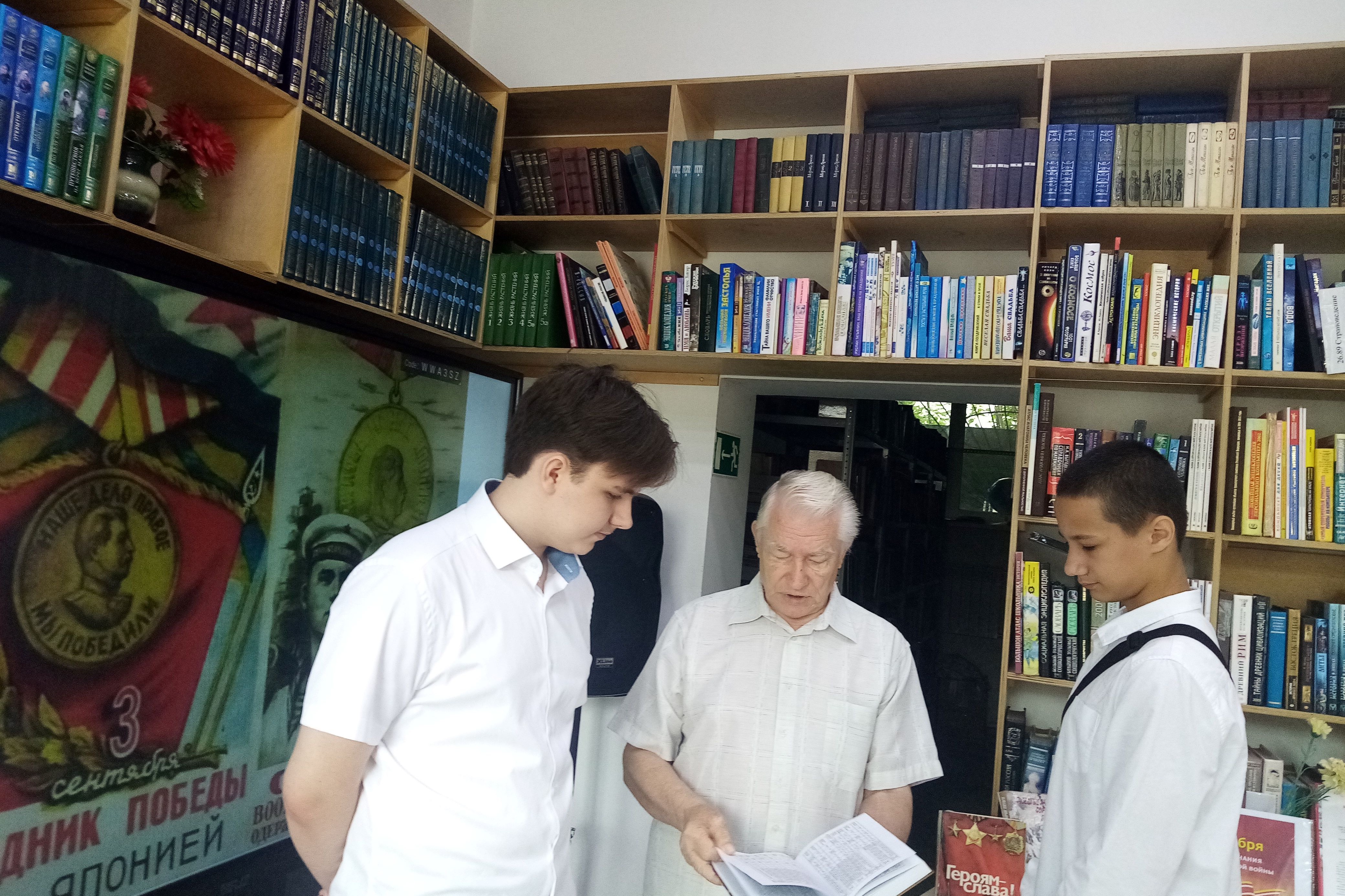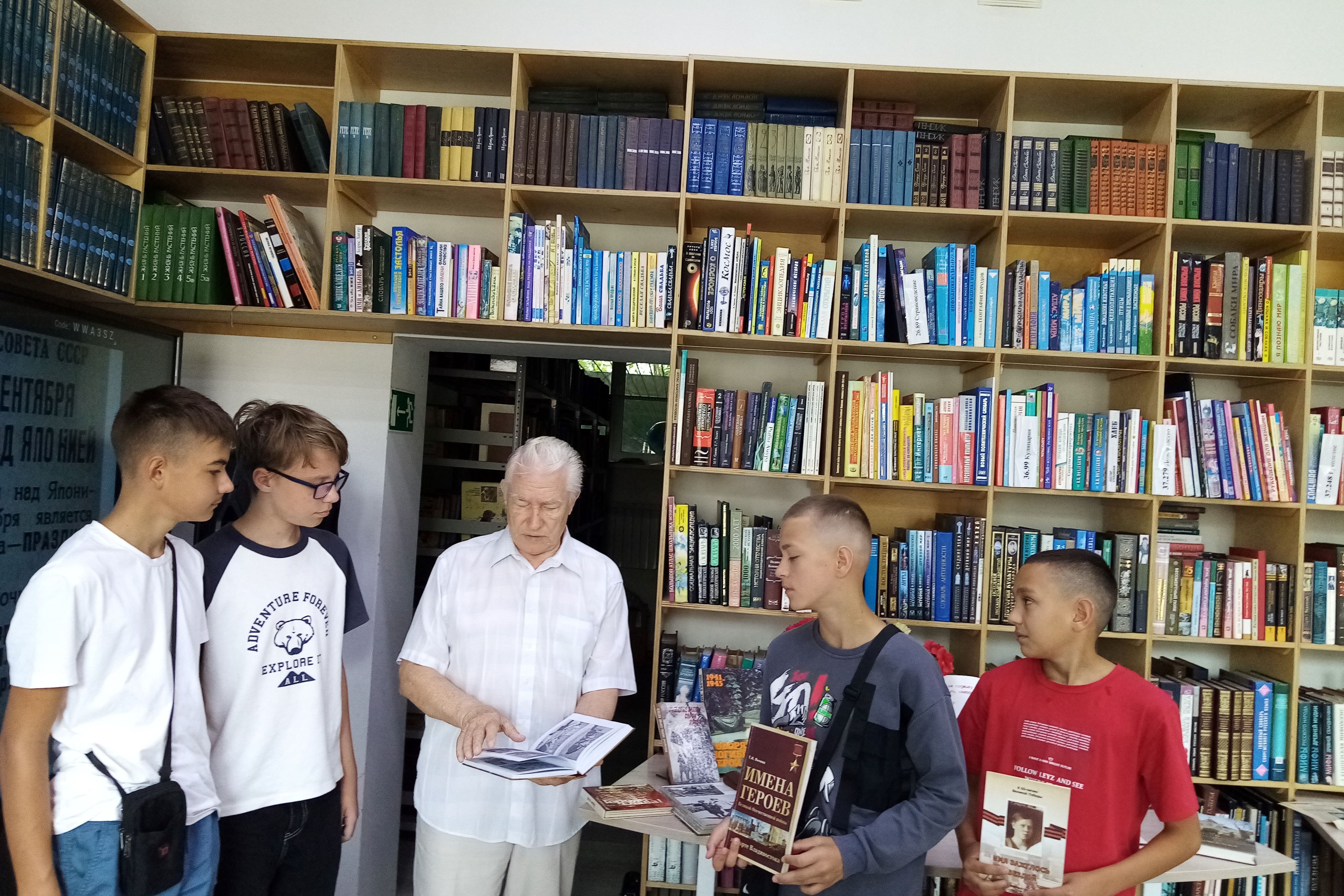 Участники мероприятия вспомнили героев, принимавших участие в боевых действиях на Дальнем востоке. Их именами названы улицы Владивостока. Школьники познакомились с тематической книжной выставкой «Памяти жить», на которой представлены издания о событиях на советско-германском фронте и боевых действиях между Японией и СССР.
