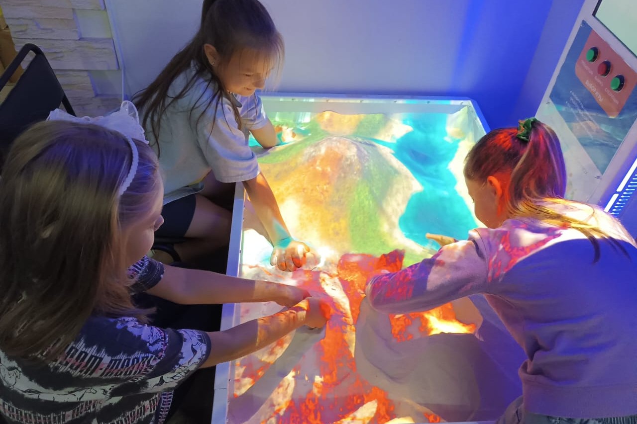 Знакомство с интерактивной песочницей, игры на интерактивных столах (киосках) и яркие интересные книги так вдохновили ребят, что они пообещали непременно прийти к нам снова вместе с родителями.