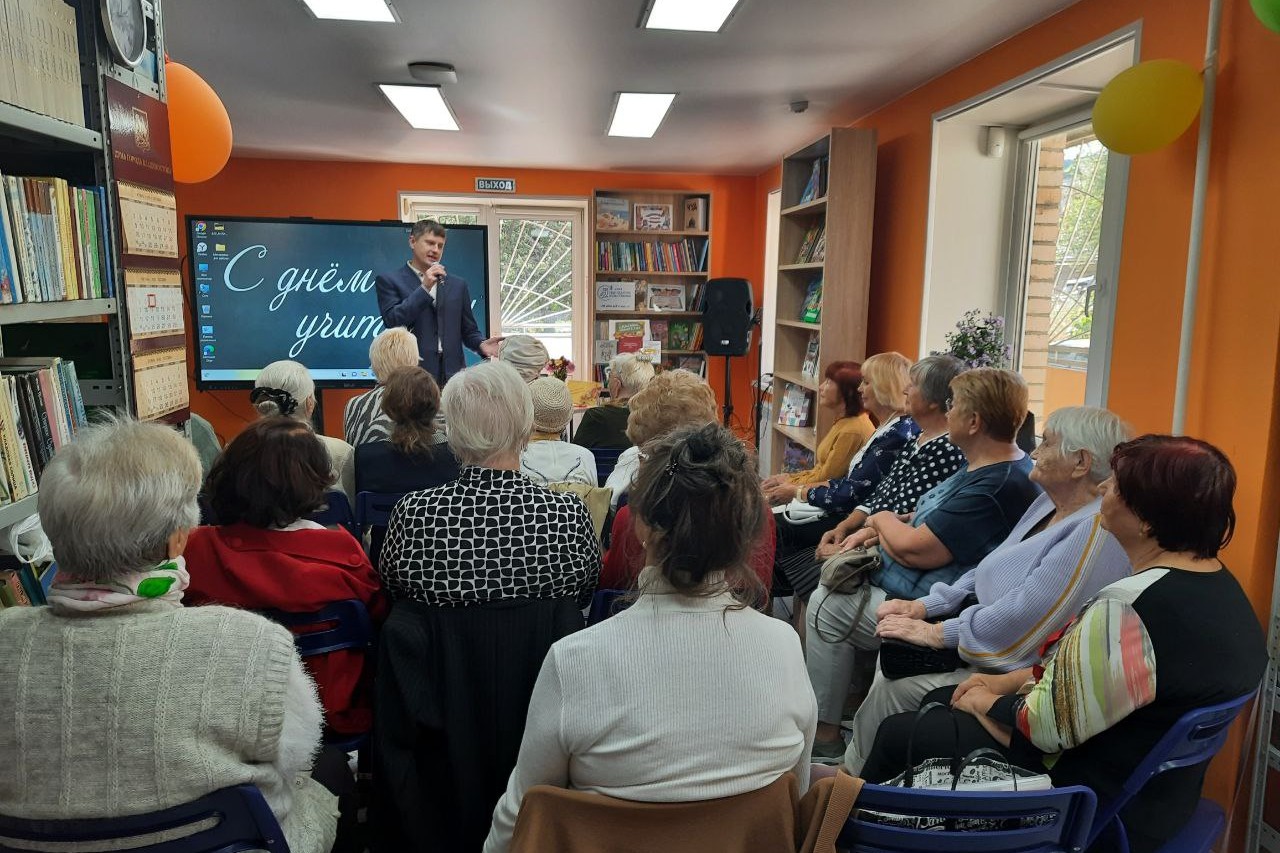 В этот день в библиотеке чествовали дорогих учителей и на импровизированную сцену вышел Антон Ровин, певец, поэт. В его исполнении прозвучали песни собственного сочинения «Осень», «Лучший город на земле», «Родимая земля», «Счастливая пора», а также песня «Ветер перемен» из кинофильма «Мэри Поппинс, до свидания!».