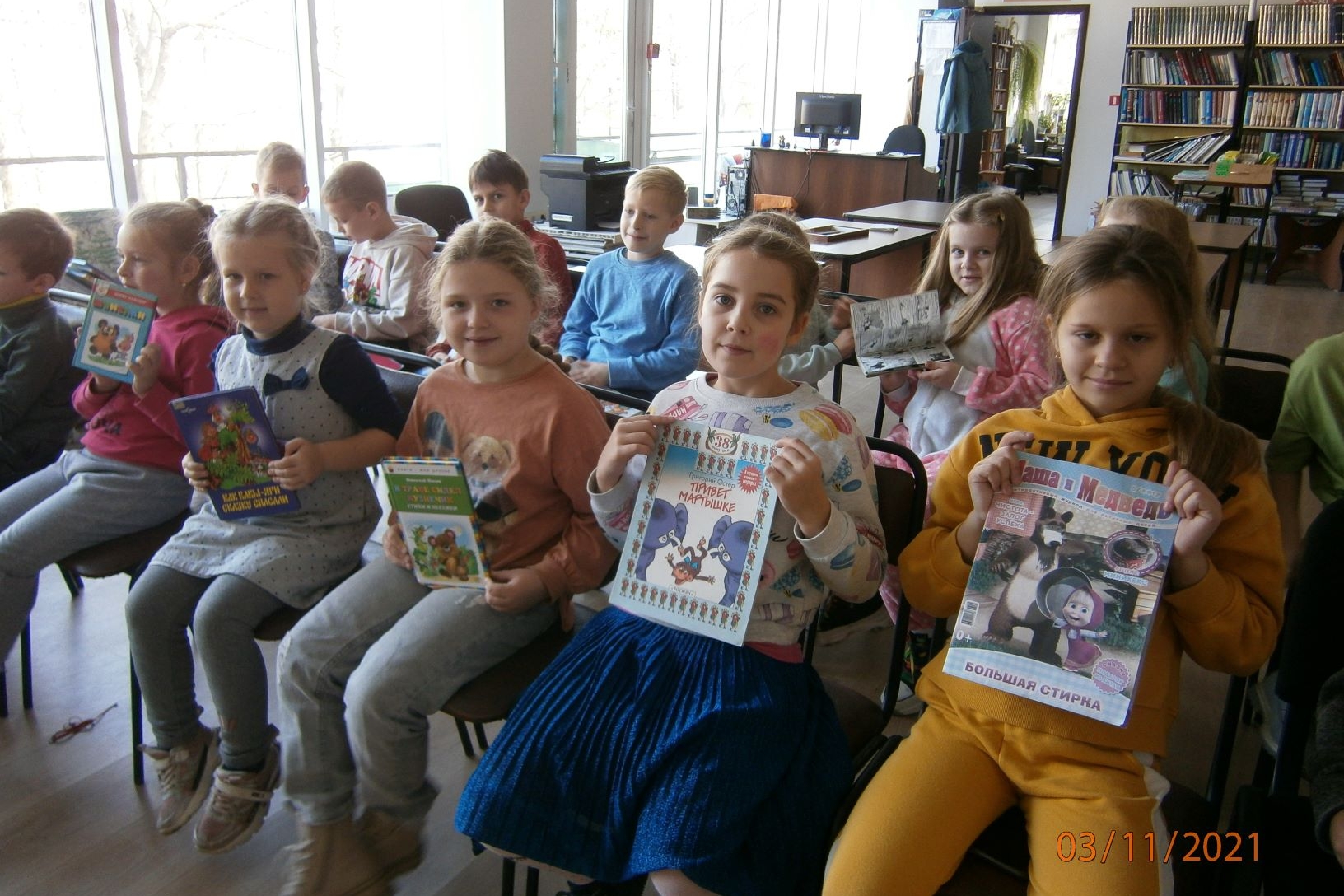 Дети рассмотрели книжки, по которым были созданы любимейшие мультики «Незнайка и его друзья», «Добрыня Никитич и Змей Горыныч», «Маша и Медведь», «Смешарики» и др.