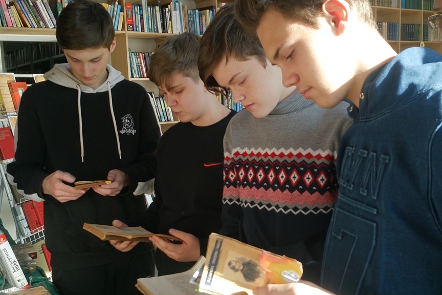Большой интерес проявили девятиклассники школы № 50 в библиотеке № 12 к книгам-солдатам, изданным в период Московской битвы. Чего было больше в их глазах — удивления, что страна издавала книги, когда враг был у стен Кремля, или изумления, что возраст у этих книг — 78 лет и они пережили войну? Но, и то и другое, говорит о том, что равнодушным никто не остался.