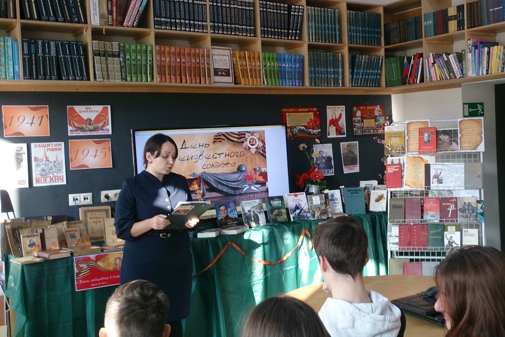 В этот день в библиотеках города на мероприятиях для школьников, почтили память воинов-солдат, кто отдал свою жизнь за Отечество и его светлое будущее. Минуты Памяти и часы Мужества, историко-информационные коллажи и книжные инсталляции — все формы библиотечной работы в этот день были направлены на сохранение и приумножение исторической памяти. Одним из носителей которой, являются книги о Великой Отечественной войне.