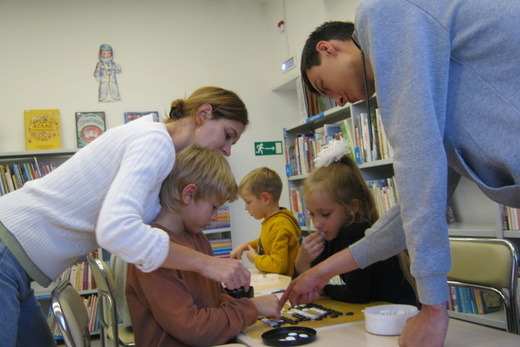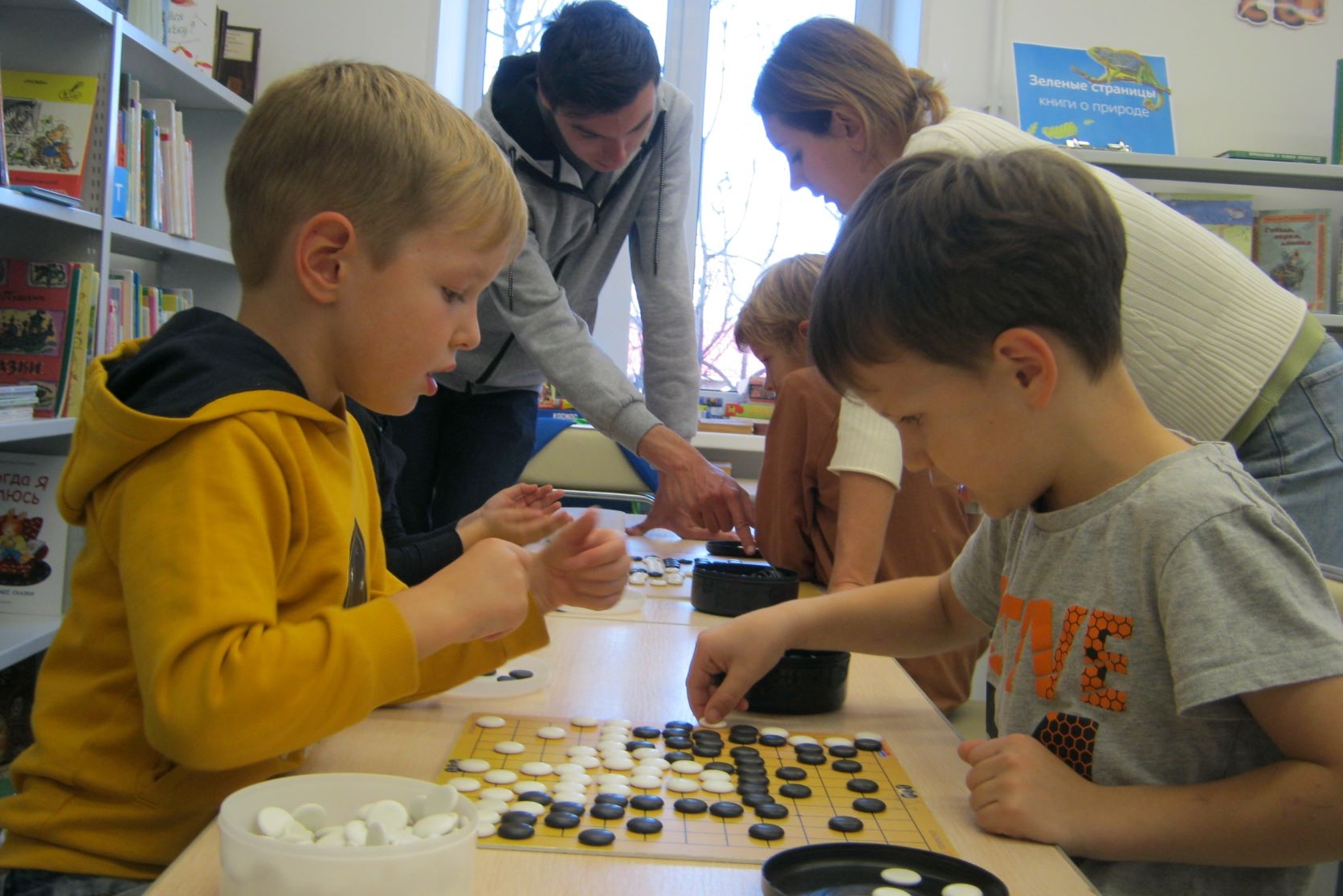 Раннее наступление темноты по вечерам не стало помехой любителям настольных игр и секции Го в библиотеке по четвергам. К тому же, все чаще детская аудитория секции Го разбавляется старшими братьями, а то и родителями. А те родители, которые заходят забрать ребенка вечером из библиотеки, не «зависают» в телефоне, ожидая, а рассматривают новые наброски. Потому что в галерее библиотеки раз в пару недель заменяется часть работ на новые.