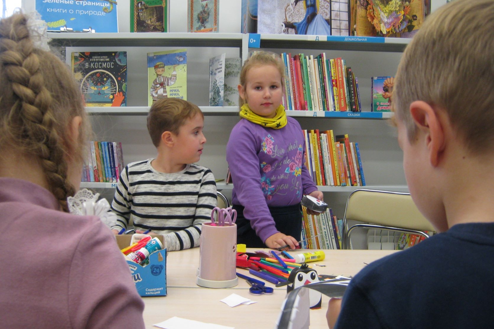 На творческих мастерских ребенок учится и постигает какое-либо дело под руководством мастера, человека знающего, умеющего и желающего научить ребенка какому-либо навыку. А в библиотеке, это – еще знакомство, привлечение к интересному досугу, а затем и к чтению литературы.