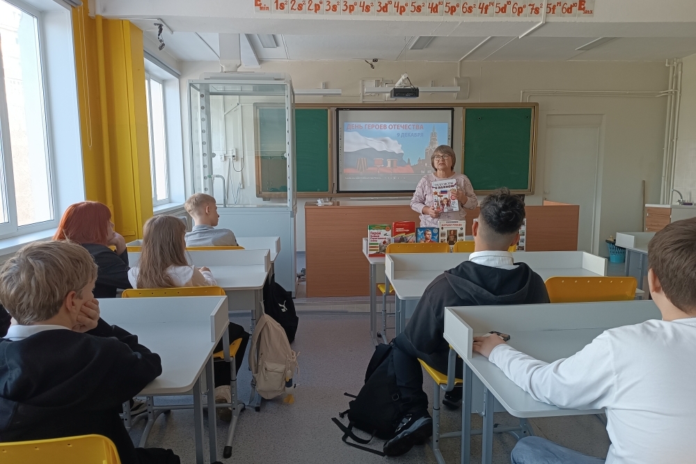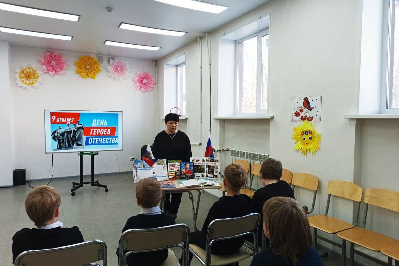 Ранее, библиотека № 17 провела для учеников 3 «А» класса частной школы «Дарина», урок мужества «Вспоминая Героев Отечества». В ходе мероприятия ребята поговорили о героях разных эпох: А. Суворове, М. Кутузове, Г. Жукове. Ребята с интересом узнали о семи лётчиках героях, помогавших спасать членов арктической экспедиции и экипаж ледокола «Челюскин» с льдины в Чукотском море. Поговорили и о современном герое Филиппов Роман Николаевич, в честь которого названа одна из улиц нашего города. Сегодня мы гордимся нашими героями, которые продолжают служить Родине и защищать её интересы.
