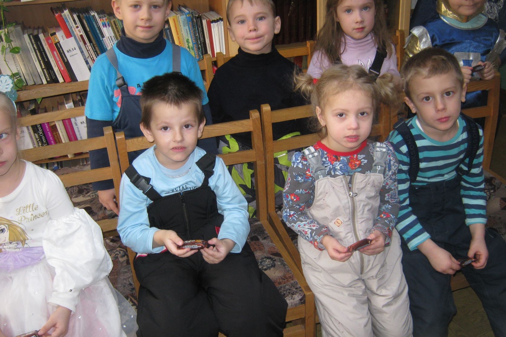 Праздничная программа «Новогодняя елка зажигает огни» активно работала в библиотеке № 15. Первыми гостями новогоднего праздника, стали ребята МДОУ Д/С №162, старшая группа. Малыши пришли не просто послушать о традиции праздника, встречать Новый год с елочкой, Дедом Морозом и Снегурочкой, но принесли подарки, сделанные своими руками. Это были елочки, снеговики, рисунки, уж очень хотелось детям рассказать и показать, какие они старательные, добрые, умелые. Затем дети приняли участие в мини-спектакле о Белой Снежинке и храбром рыцаре Львиное сердце, пели новогодние песни, читали стихи, отгадывали загадки.