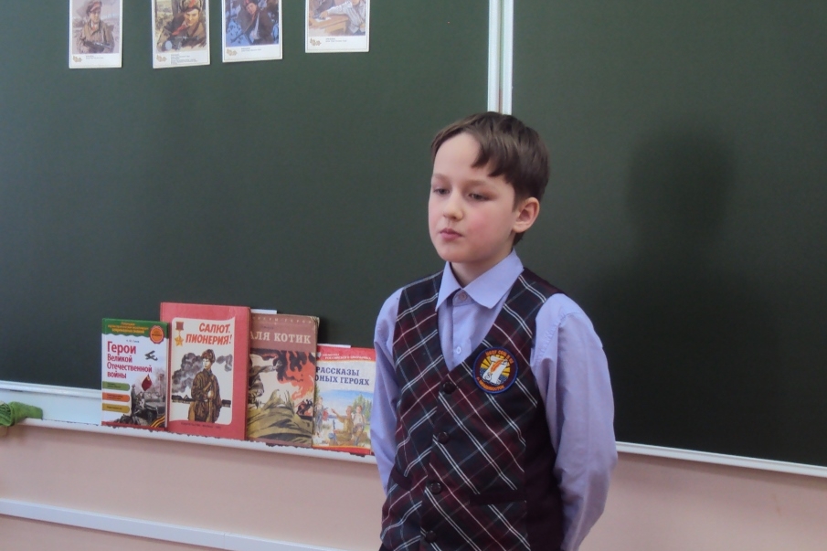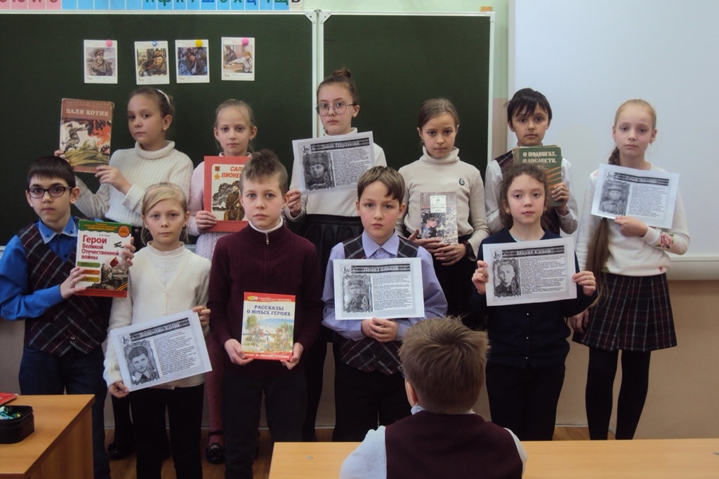 6 февраля в библиотеке № 14 для детей из клуба «Ровесник» прошел час памяти юных героев-антифашистов. Они узнали, что война стала общей биографией целого поколения детей. В грозные годы Великой Отечественной войны на борьбу с фашистами рядом со взрослыми поднялись девчонки и мальчишки, их ровесники. Отложив недочитанные книжки и учебники, взяли в руки винтовки и гранаты, стали партизанскими разведчиками, неутомимо работали в цехах заводов и фабрик, на колхозных полях и фермах, вдохновляемые одной мыслью: «Все для фронта! Все для победы!» Читатели узнали о пионерах – героях Советского Союза: Зине Портновой, Лене Голикове, Диме Юрченко и о многих других, о подвигах, которые они совершали во время войны. На книжной выставке «Юные герои “сороковых”» дети познакомились с книгами о пионерах-героях.