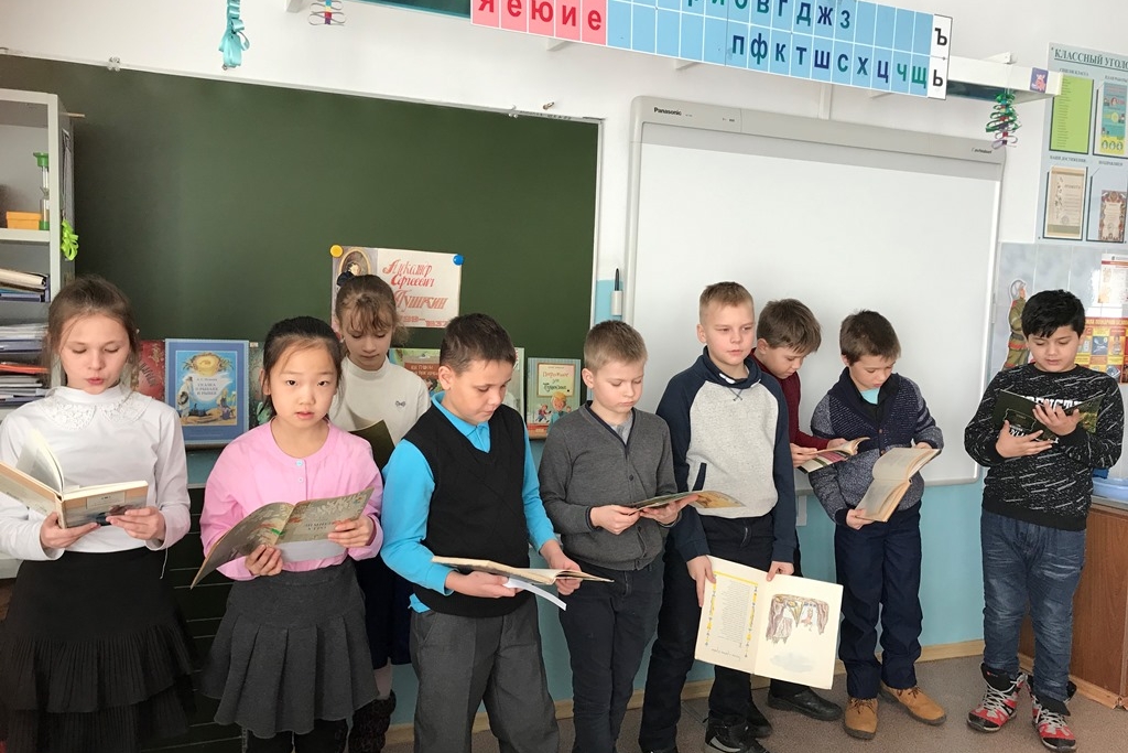 Ученики показали отличное знание его произведений, читали стихи наизусть и, используя сборники его стихов, вспоминали запомнившиеся строки любимых сказок.