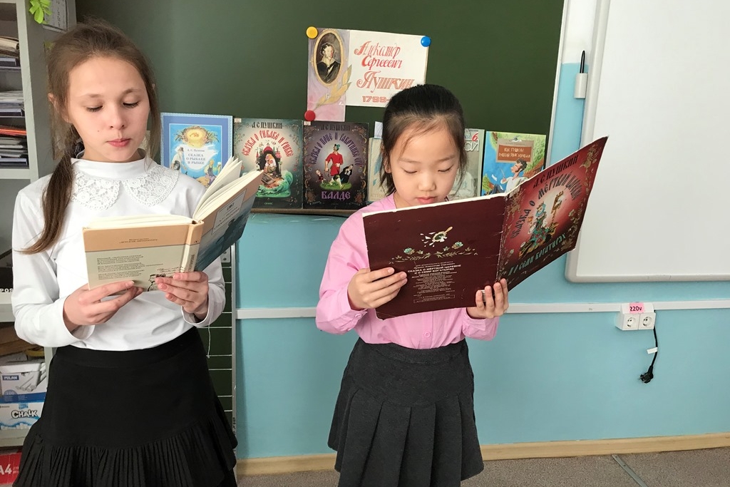 Ребята познакомились с увлекательной книгой Марины Улыбышевой и узнали, каким был русский язык до того, как появился Пушкин, и как изменилась русская речь под пером великого поэта. Детей чрезвычайно заинтересовала книга Маргариты Погореловой «Кто такой Пушкин?» из серии «ЖЗЛ для детей». Они увлеченно листали яркие страницы его стихов и сказок.