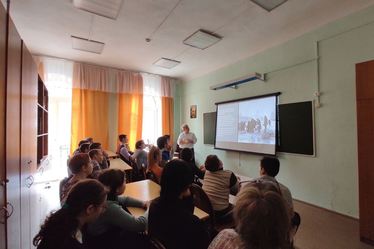 Во время мероприятия школьникам было рассказано о блокаде Ленинграда, о Дороге жизни, о героизме жителей, так же были показаны слайды с фотографиями блокадного города. Во время мероприятия вместе с ребятами прочитали один из рассказов книги Николая Тихонова «Ленинградские рассказы». Интерактивная презентация позволила отправится в путешествие в прошлое, в ходе которого ребята узнали о подвигах солдат, о подвигах горожан, участвовавших в обороне Сталинграда. Особенно потрясла их история 12-летней Люси Радыно, юной разведчицы, добывавшей ценную информацию за линией фронта.