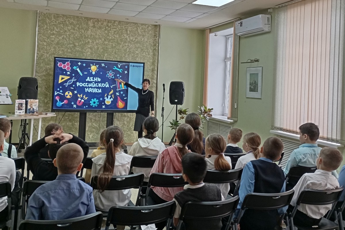 Библиотека № 2 (ул. Чичерина, 10, пос. Трудовое) провела информационный час для ребят школы продленного дня. Из книги «Разговоры о важном» участникам рассказали об истории праздника и какими достижениями прославились русские ученые на весь мир. Ребята узнали о Михаиле Васильевиче Ломоносове, Дмитрии Ивановиче Менделееве, создавшем таблицу химических элементов, с которой школьники будут знакомиться в старших классах. Дети и сами побывали в роли химиков и попробовали смешать химические вещества разной плотности, а после, объяснить почему они не смешиваются. В космосе мы первые благодаря Константину Эдуардовичу Циолковскому – создателю ракетостроения и открывшему путь к звездам. Его работы опередили время и заложили основу космонавтики. Ребята рассмотрели книги из серии «Настя и Никита», где рассказывается о великих русских ученых, книги-энциклопедии «Как и почему?», на страницах которых можно найти много интересных научных открытий.