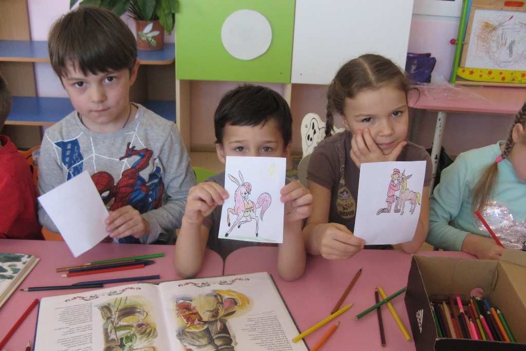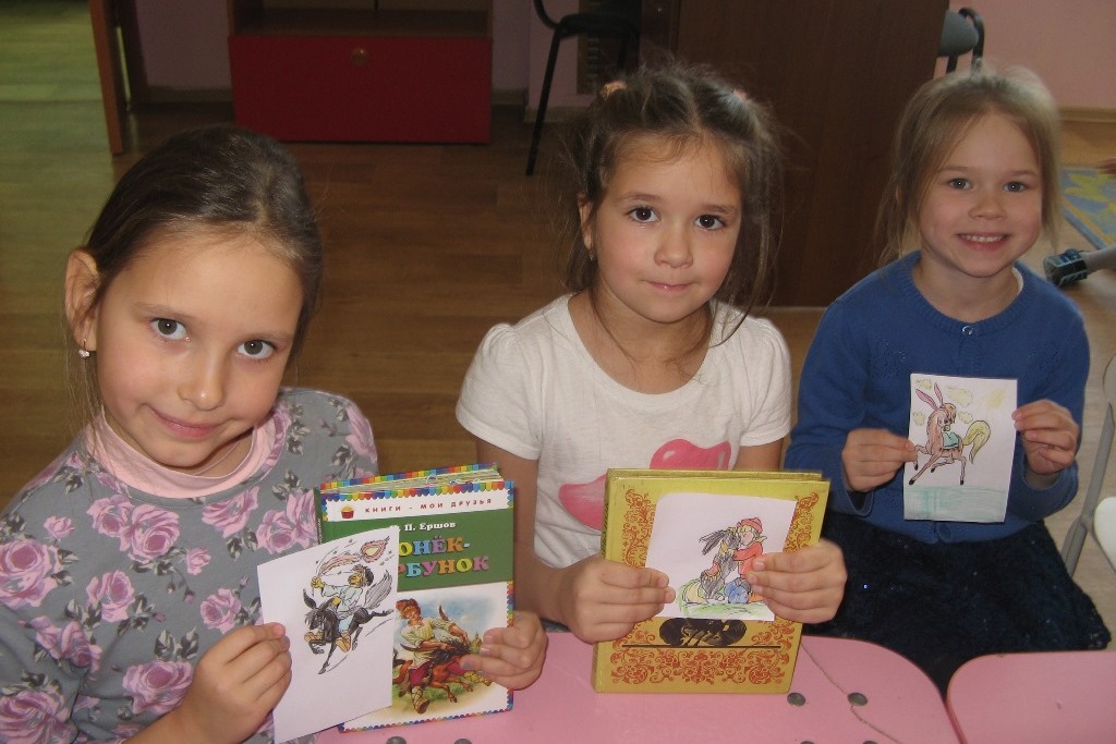 Дети с интересом слушали рассказ о жизни Петра Ершова, о том, что эту сказку он написал в возрасте 19 лет. Интересными и увлекательными показались ребятам задания викторины по старорусским словам. Дети даже не подозревали о значении многих слов, например, кто такой спальник, что такое почивальня, сенник, лубки, челядь. Они слушали сказку об удивительных приключениях Иванушки. Детей привлекла смекалка, доброта и бескорыстие главного героя, а еще волшебная сказка удивила их своими чудесами. Иван выполнял все возложенные на него испытания, а на помощь ему в самую тяжелую минуту всегда спешил настоящий и искренний друг Конек-горбунок.