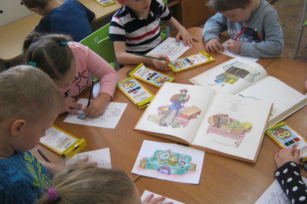 5 марта библиотека № 8 навестила своих друзей – старшую и подготовительную группу детского сада №80. Поводом для встречи стала книга-юбиляр «Багаж» Самуила Маршака, в марте исполняется 95 лет со дня издания книги. Детсадовцы послушали стихотворение Маршака и поговорили о современном багаже, о том, как его транспортируют, где ставят отметки. Замечательные иллюстрации Владимира Гальдяева в книге-юбиляре помогли детворе почувствовать обаяние прошлого: предметы багажа вековой давности на рисунке художника — это уже ретро. Поглядывая на старинные предметы на страницах, детсадовцы раскрашивали в такие же цвета свои чемоданы и диваны на бумаге.