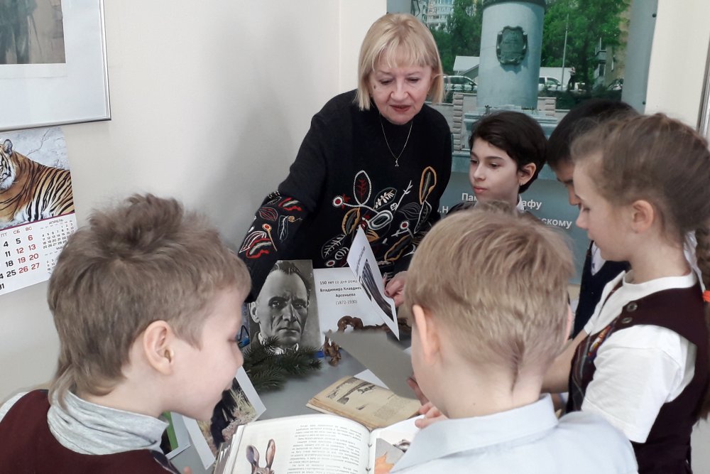 В библиотеке имени Н. Н. Муравьева-Амурского 9 марта прошло третье мероприятие проекта «Встречи в тайге. Звери и птицы на страницах книг В. К. Арсеньева», посвященного 150-летию со дня рождения исследователя Дальнего Востока, путешественника, этнографа и писателя В. К. Арсеньева (1872-1930). Данный проект с успехом стартовал 19 января. Учащиеся 3-а класса школы № 62 в третий раз становятся гостями очередной встречи, тематически связанной с предыдущей, в которой «удэхеец заметил лису». На сей раз Арсеньев-рассказчик изумлен: «Батюшки, да это чёрно-бурая лисица!» С данной разновидностью обыкновенной рыжей лисицы дети оказались вовсе не знакомы.