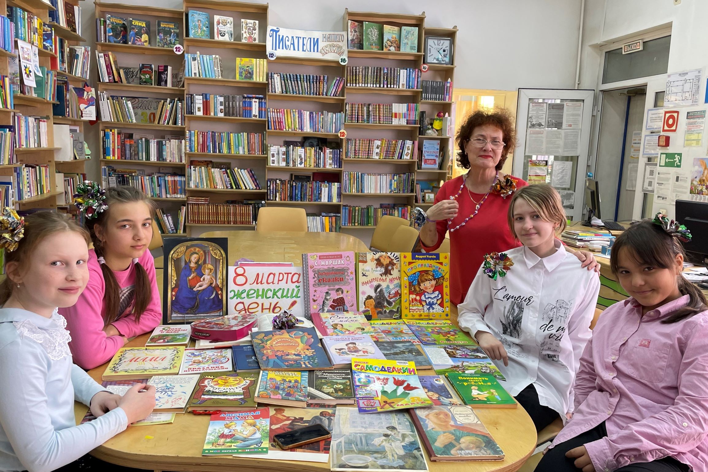 3 марта литературный час, посвященный детским писательницам организовала детская библиотека № 5 для учащихся начальной коррекционной школы — детский сад VII вида. Ребята познакомились с жизнью и творчеством Ирины Токмаковой, Марины Бородицкой, Астрид Линдгрен, Ирины Пивоваровой, Татьяны Александровой и Агнии Барто.