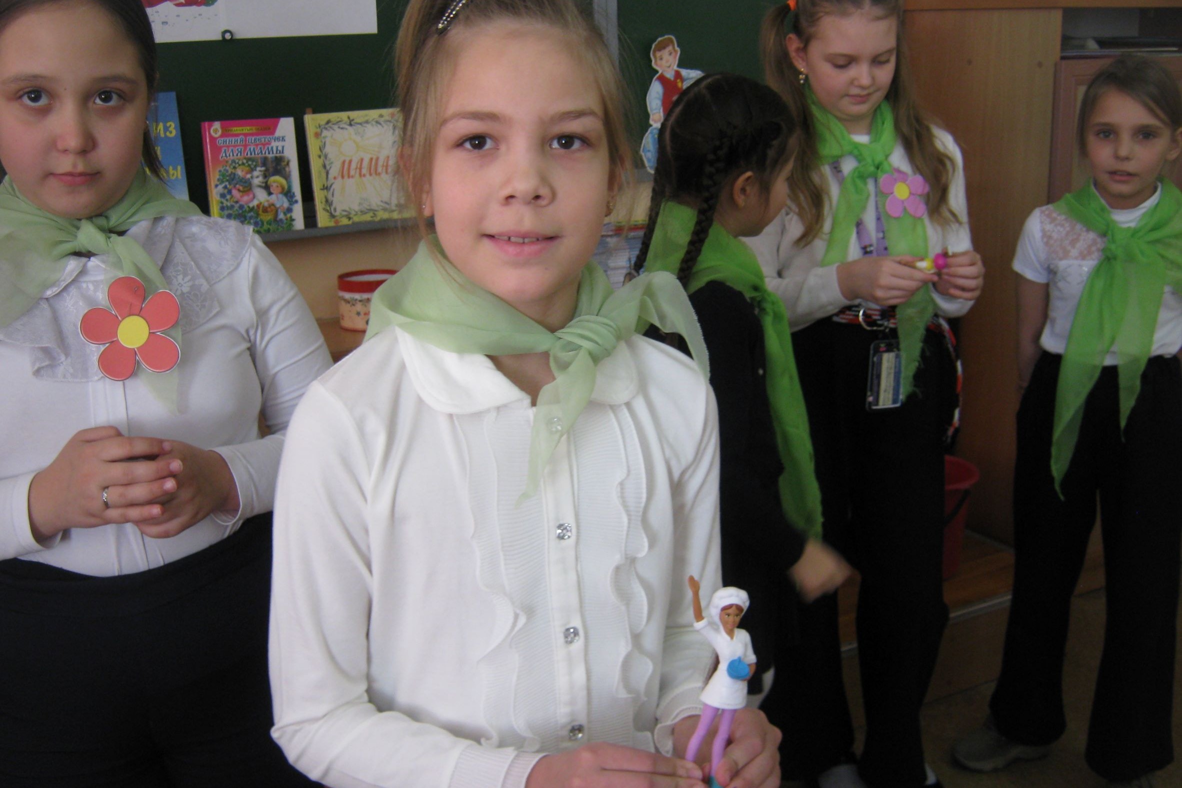 7 марта для девочек 2 «В» класса СОШ № 54 «Вектор», состоялась шоу-программа «Девичий переполох», организованного библиотекой № 15. Девочки получили задание побывать на балу у принца. Спели девочки веселую, задорную песенку о ромашке на тонком стебельке. Поделились рецептами вкусных пирогов, эти рецепты они подсмотрели у бабушек. Все у девочек получалось и на вопросы викторины отвечать, и о профессиях своих мам рассказать, спеть, станцевать, мальчикам загадки загадать.
