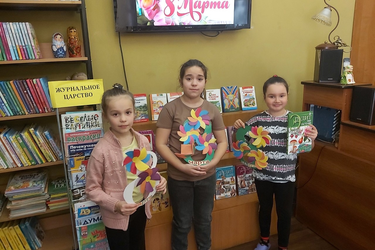 7 марта сотрудники детской библиотеки №7 провели с учениками 3 «Г» класса конкурсно-игровую программу. Дети с удовольствием участвовали в конкурсах, играх, викторинах, вспоминали стихи, поэмы, рассказы и повести, в которых наши поэты и писатели воспевают женщин, девочек, девушек. Еще в библиотеке дети активно готовили подарки к празднику на творческой мастерской.
