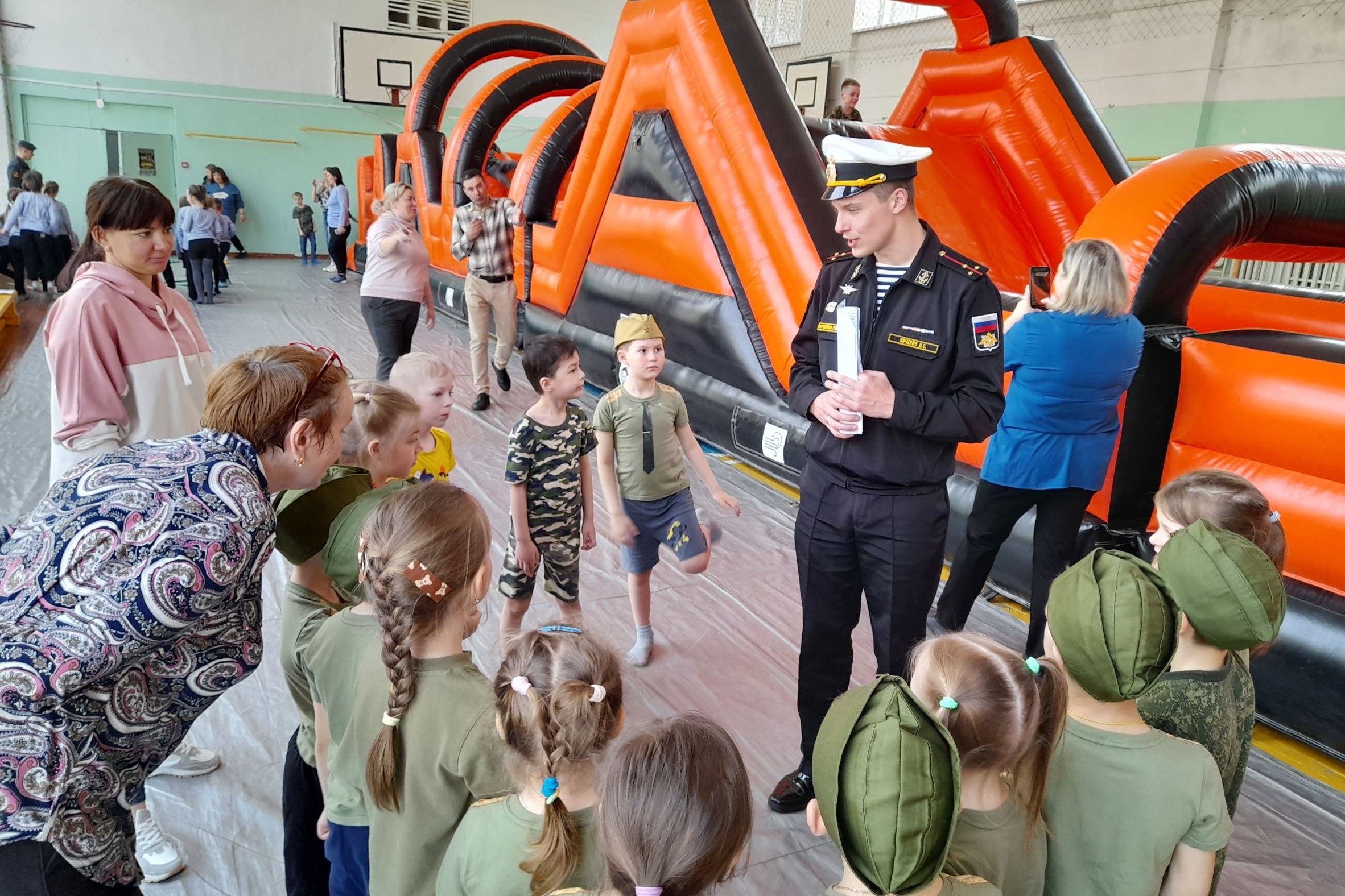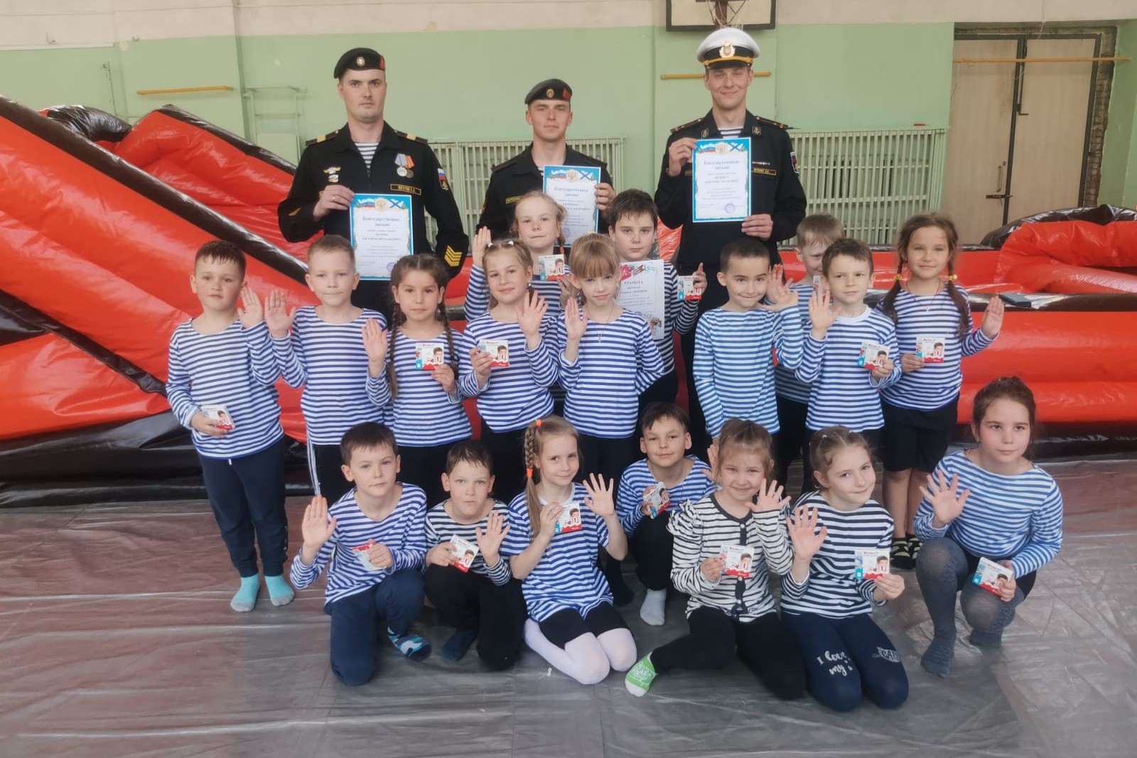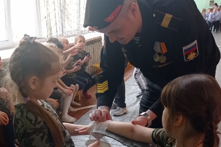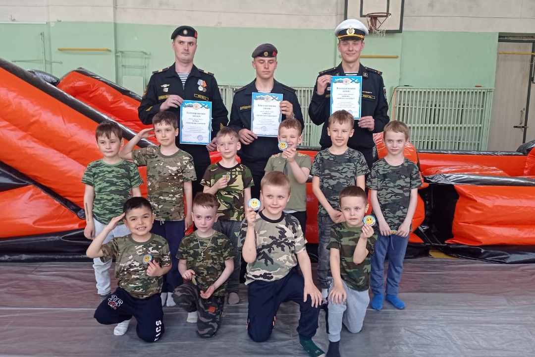 3 мая воспитанники ДОУ № 68 стали участниками интеллектуально-спортивной игры «Дальневосточный герой», организованной библиотекой № 16, при поддержке Владивостокского отделения ПКО ВООВ «Боевое Братство», МБОУ СОШ № 43 в лице директора Авербух Ирины Анатольевны и преподавателя физической культуры Кудрявцева Юрия Александровича. В гостях у ребят были бравые воины – бойцы бригады морской пехоты гвардии старший лейтенант Ивченко Дмитрий Сергеевич, гвардии старший сержант Петрик Евгений Витальевич и гвардии старший матрос Синицин Сергей Александрович, участники боевых действий.