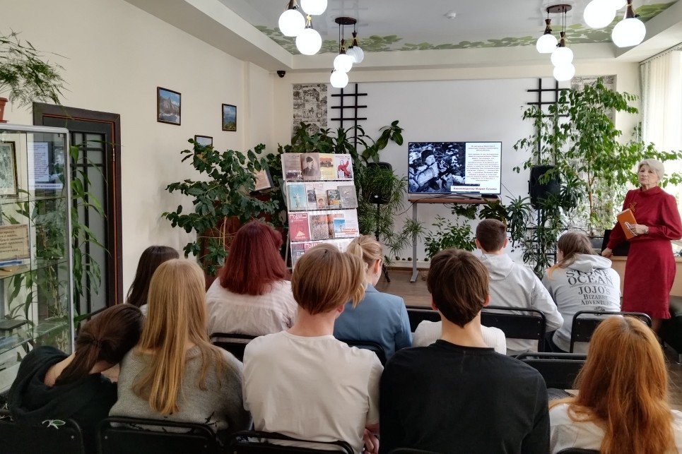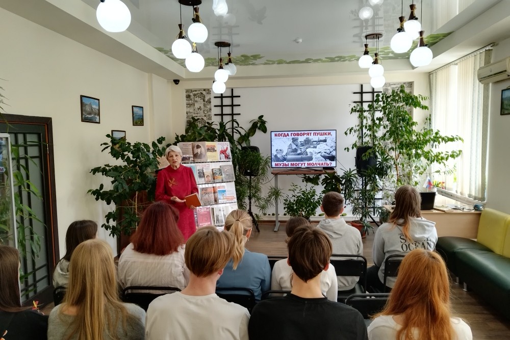 В конце апреля библиотека им. И.У. Басаргина провела час истории «Когда говорят пушки, музы молчат?» в рамках программы «Вектор чтения» с учащимися 10 «А» класса МБОУ «СОШ № 57». Казалось бы, нет более противоречивого понятия, чем война и музы. Но Великая Отечественная война доказала, что музы способны вдохновлять защитников отечества на победу.