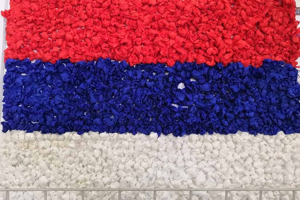 Читатели библиотеки им. И.У. Басаргина, работая в творческой мастерской «Смайлики», прошлым летом, создали коллективную работу «Российский флаг».