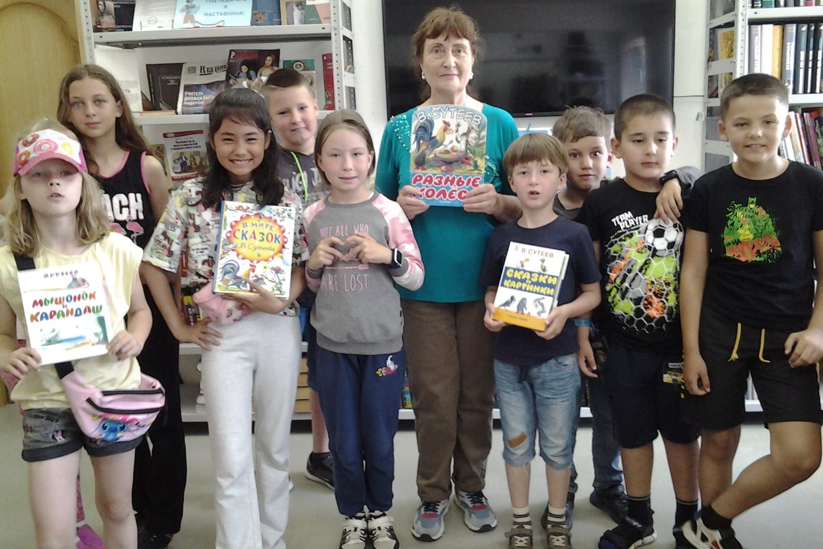 Прочитав сказки автора, ребята проверили свои знания, участвуя в интерактивной викторине, где было предложено убрать лишних героев из сказок Владимира Григорьевича Сутеева.