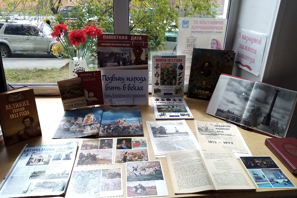 К этой славной дате библиотекой №12 подготовлена интересная и красочная книжная выставка, которая раскрывает перед читателями незабываемые героические страницы российской истории. Побывав на выставке, читатели знакомятся с героями Отечественной войны — полководцами, военачальниками и простыми солдатами, чьё мужество и героизм сыграли решающую роль в победе над французами. Авторы книг выставки рассказывают о событиях, знакомых каждому из школьной программы, так, словно они еще не стали историей, не превратились в суховатые фразы учебников. Все происходит здесь и сейчас: читатель прямо с книжной страницы шагает в ту грозную и славную эпоху, оказывается на бивуаке, среди солдат, чистящих амуницию, или в самом сердце сражения, где сверкают на солнце ряды кирасир, слышен гром пушек, ряды за рядами, скачут французские кавалеристы, и им навстречу гремят залпы пехоты…