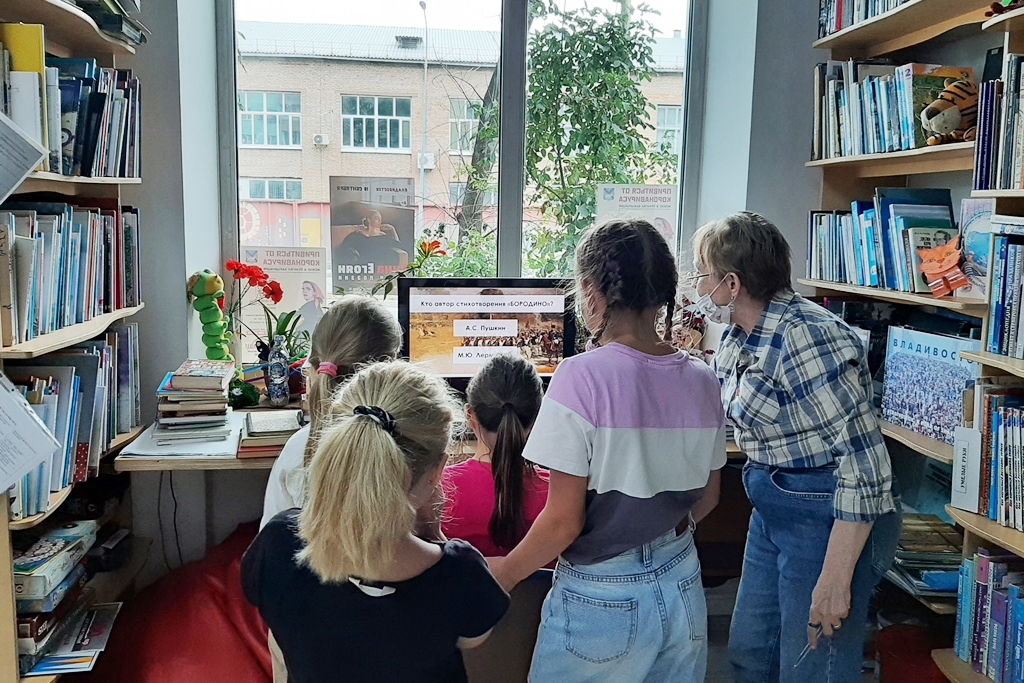 Дети вспомнили стихотворение Михаила Юрьевича Лермонтова «Бородино» и читали его вслух. А чтобы закрепить знания о произведении Лермонтова, дети вместе со взрослыми отгадывали интерактивную викторину с одноименным названием выставки. Но самым сложным оказался вопрос о героях 1812 г., именами которых назвали улицы нашего города. Никто не смог назвать улицы имени Михаила Богдановича Барклая-де-Толли, Николая Николаевича Раевского, Дениса Давыдова. Ответ нашли в книге «Именные улицы города Владивостока».