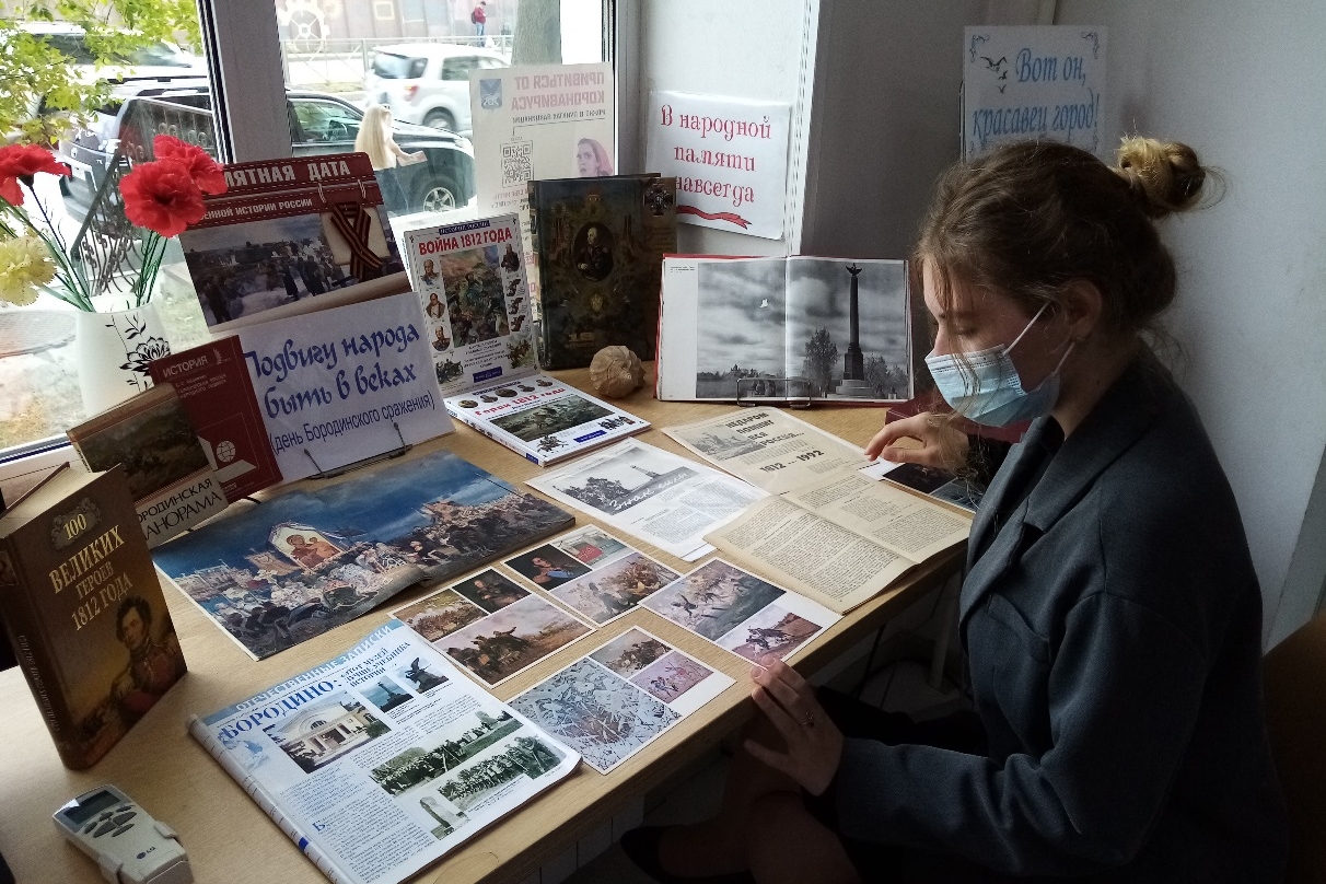 В библиотеке №10 организована выставка-экспозиция «Во славу российской доблести — Бородино», посвященная этому историческому событию. Бородинская битва нашла отражение в литературе и искусстве (стихотворения Дениса Давыдова, Александра Пушкина, Михаила Лермонтова, Петра Вяземского, роман Льва Толстого «Война и мир», живописные полотна Василия Верещагина, Франца Рубо и др.)