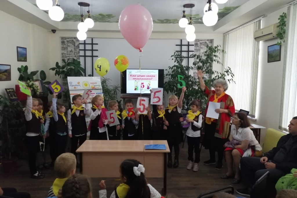 8 октября библиотека им. И.У. Басаргина организовала для учащихся 1 «А» класса школы №57 праздник первой оценки «Учат в школе».