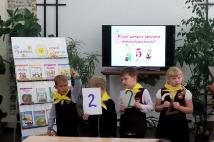 Внимательно следили ребята за игрой «Кто хочет стать отличником?» Софья К. и Алёша Н. стали победителями, угадав десять вопросов. Подвижная игра «Прогони двойку и единицу» вызвала всеобщее веселье, и разрядило обстановку. К «громкому» чтению был подготовлен рассказ «Радость» из сборника авторской детской книги «Весёлая мозаика».
