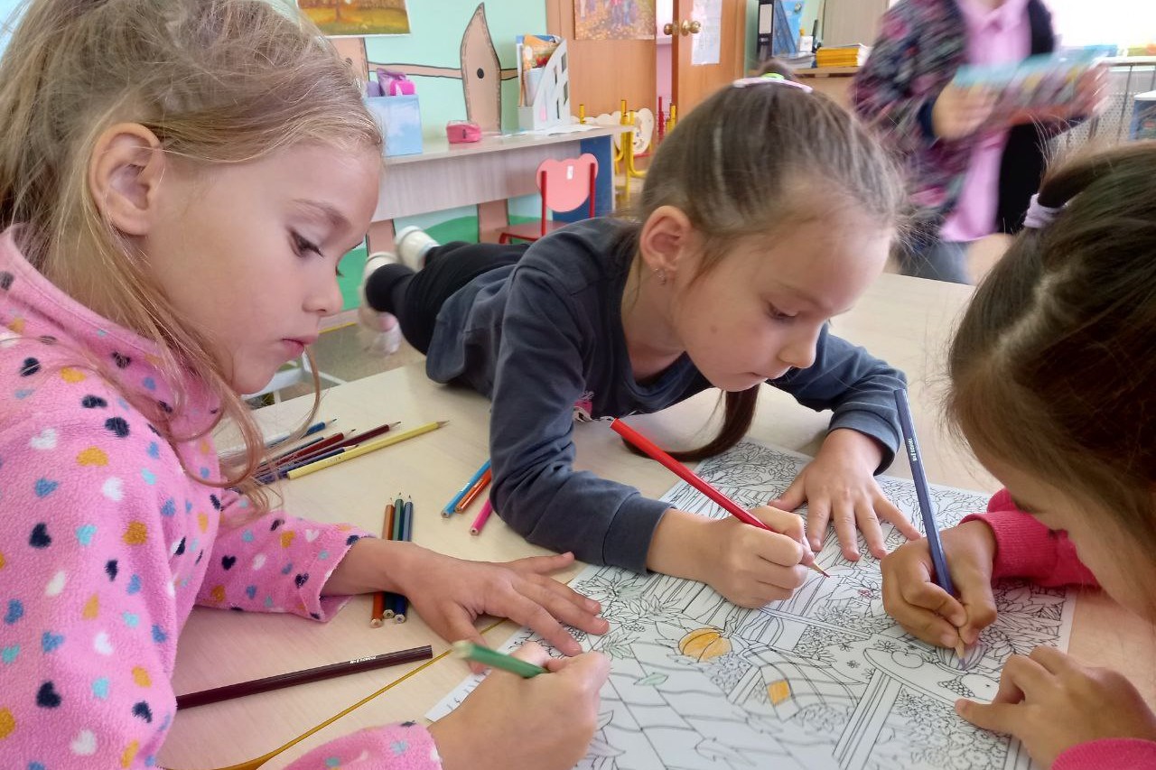 Для ребят была подготовлена конкурсно-музыкальная программа, состоящая из музыкальных загадок, затем дети угадывали музыкальные инструменты на слух, играли в блиц-опросе «Какую ноту кладут в суп» и участвовали в фонетической игре «Не надо ля-ля», в которой по мотиву известной песни композитора В. Шаинского «От улыбки станет всем светлей», пропевали слова звуками животных. Завершением встречи стала расслабляющая арт-терапия. Ребята коллективно создавали осенние пейзажи под волшебную и немного грустную мелодию П.И. Чайковского «Октябрь».